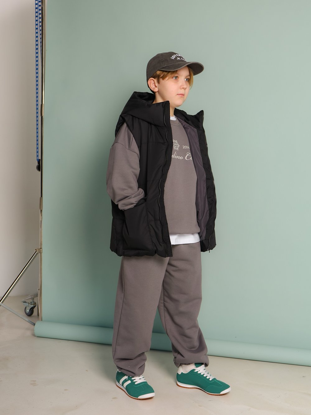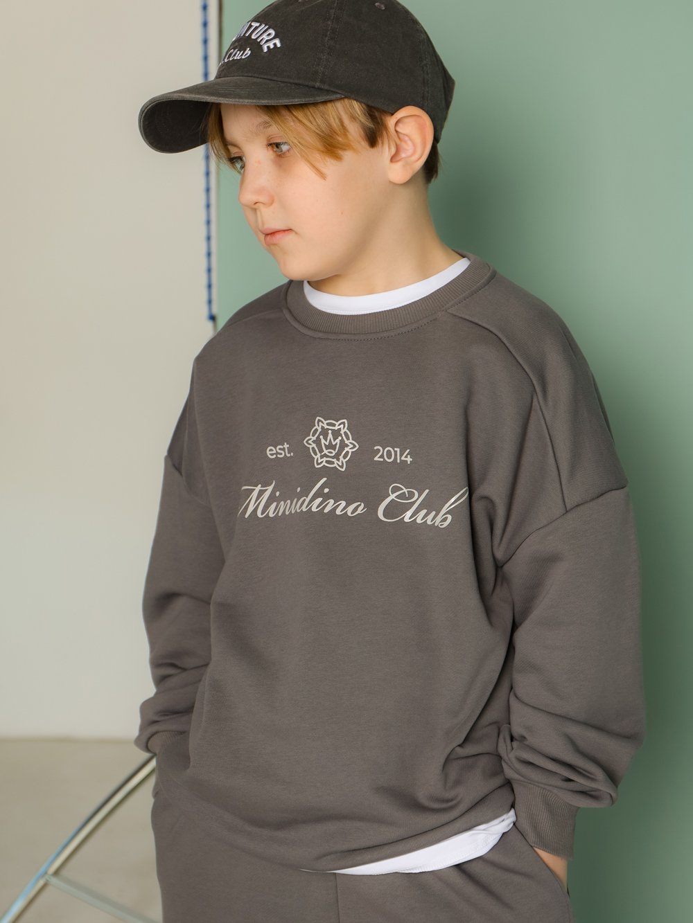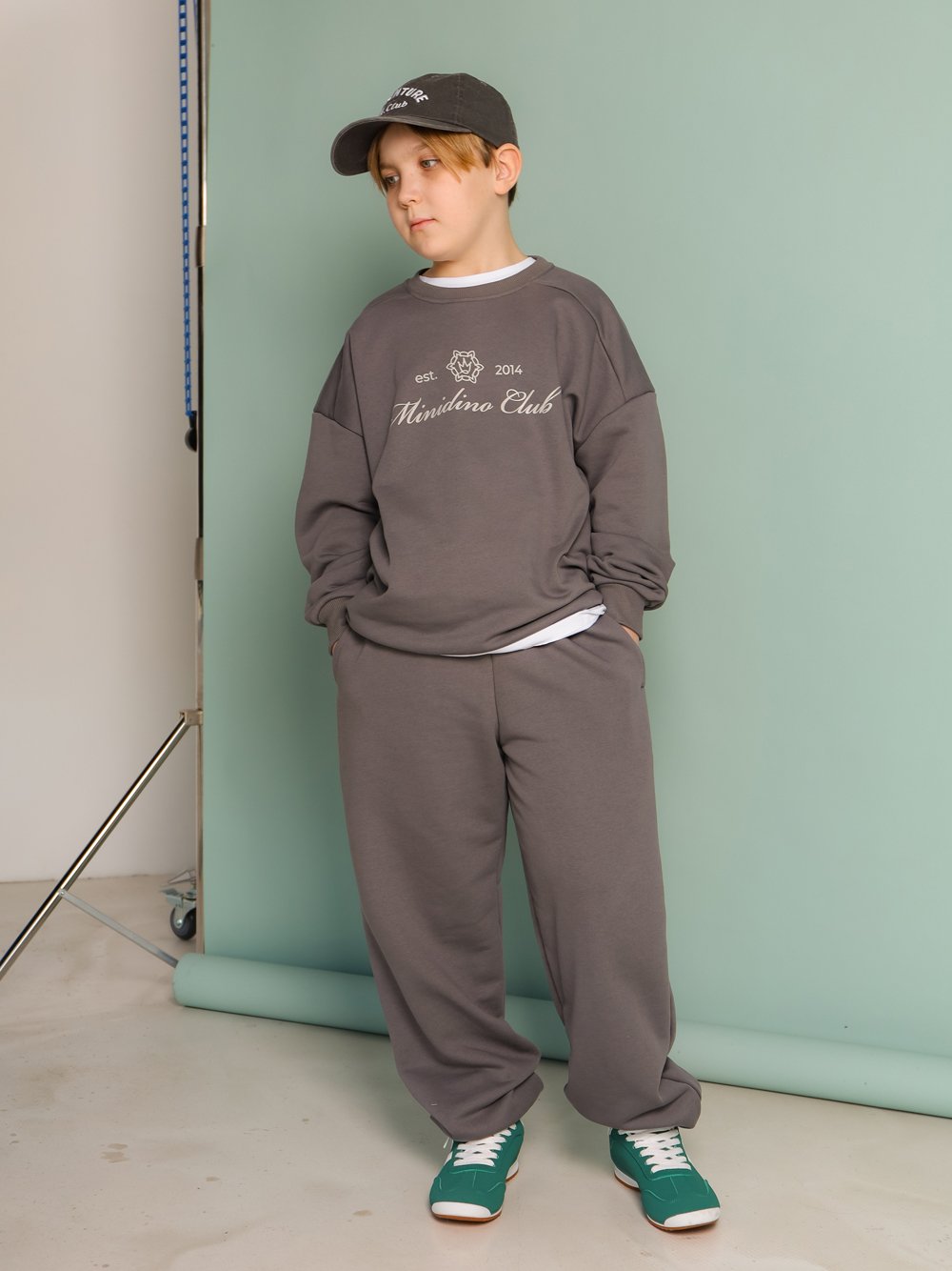 Комплект из свитшота и брюк. Свитшот over size со спущенным плечом. Манжеты, горловина и низ изделия обработаны кашкорсе. На полочке объемное нанесение (шелкография).