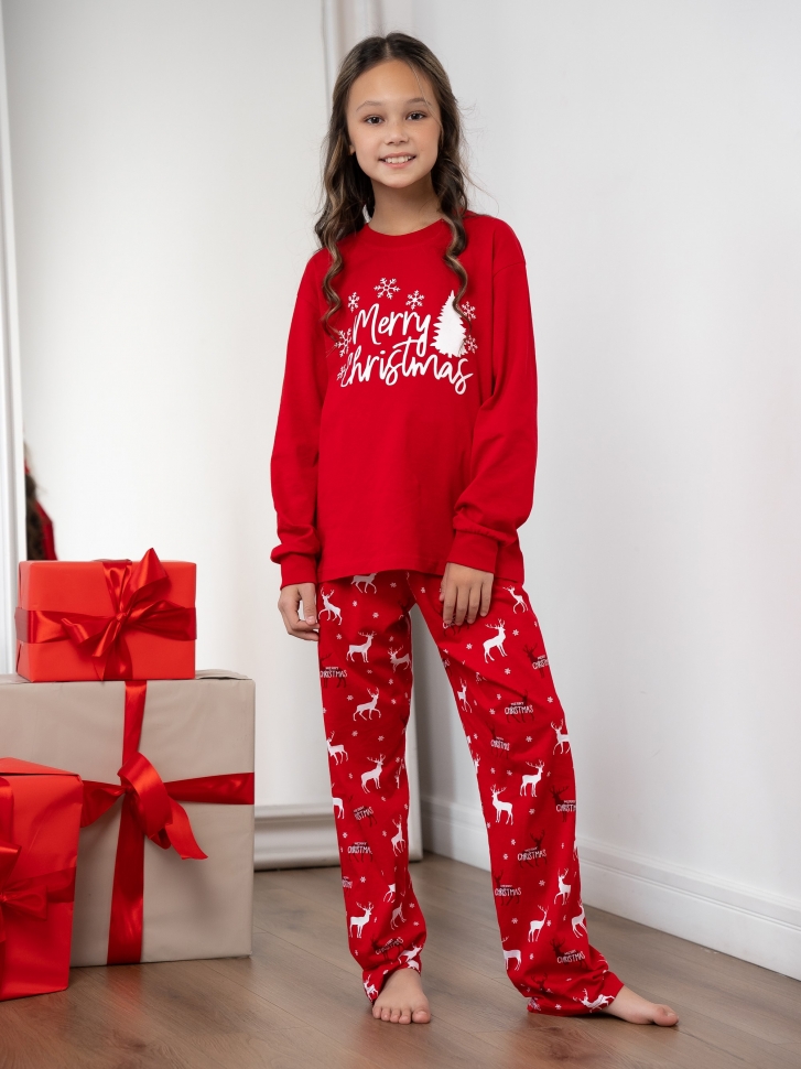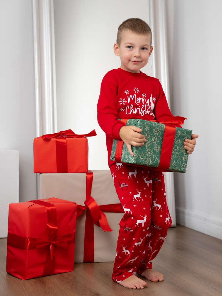 Детская новогодняя пижама из 100% хлопка представляет собой комплект из лонгслива и брюк, специально разработанный для комфортного и тёплого сна в зимний период. Натуральный хлопок обеспечивает хорошую воздухопроницаемость, мягкость и гипоаллергенность, что особенно важно для детской чувствительной кожи. Универсальный дизайн и праздничные мотивы делают такую пижаму отличным выбором как для мальчиков, так и для девочек, а также удобным вариантом для создания семейного образа на Новый год. Этот комплект сочетает комфорт, практичность и праздничное настроение, что делает его идеальным подарком и элементом уютного зимнего гардероба ребёнка.