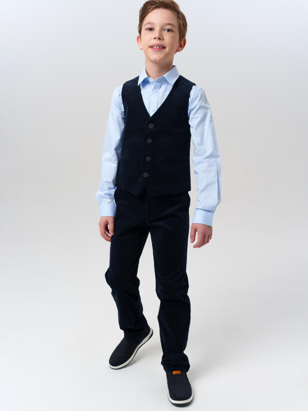 Тёмно-синий школьный текстильный вельветовый костюм двойка для мальчика подростка от PlayToday — стильное решение для школы и торжественных мероприятий. Классический элегантный комплект помогает юному школьнику выглядеть опрятно и уверенно каждый день.