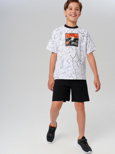 Этот физкультурный подростковый костюм для мальчиков выполнен из приятного к телу трикотажа с добавлением эластана, что делает его одновременно эластичным и устойчивым к деформации. Базовая белая футболка оверсайз придаёт образу модный и расслабленный вид, а универсальные спортивные чёрные шорты со шнурком удобно сидят по фигуре и не сползают даже во время подвижных игр.