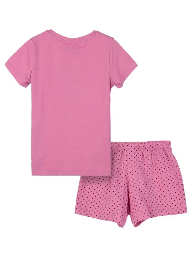 Пижама: футболка, шорты с высоким содержанием хлопка. Благодаря наличию эластана в составе ткани, изделие проще в уходе и держит форму. Шорты свободного кроя. Эластичный пояс с тесьмой позволяет легко надевать шорты и утягивать до комфортной посадки.