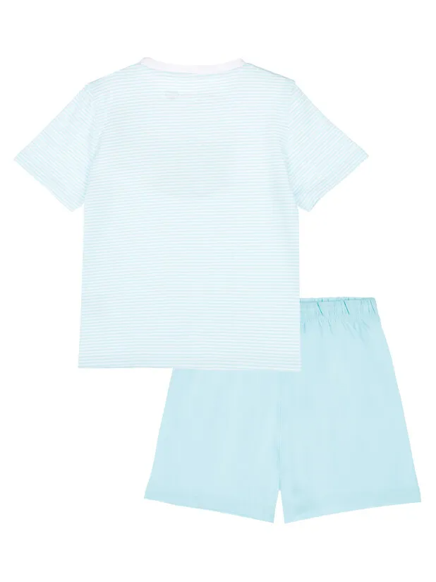 Пижама: футболка, шорты. Футболка классического кроя. Эластичный пояс с тесьмой позволяет легко надевать шорты и утягивать до комфортной посадки. Высокое содержание хлопка 93%. Благодаря наличию эластана в составе ткани, изделие проще в уходе и держит форму.
