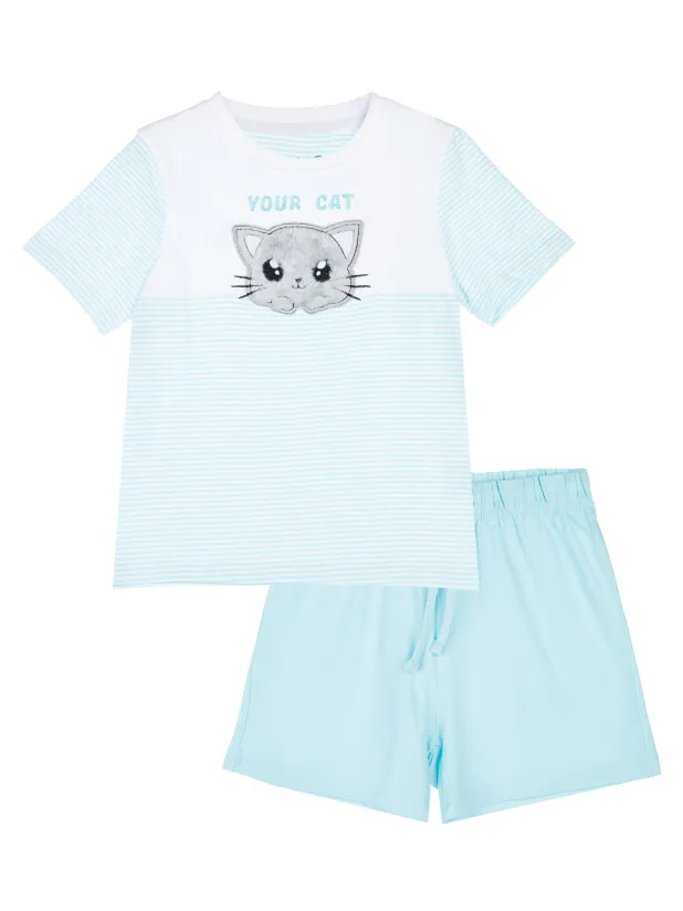 Комплект трикотажный для девочек: фуфайка (футболка), шорты