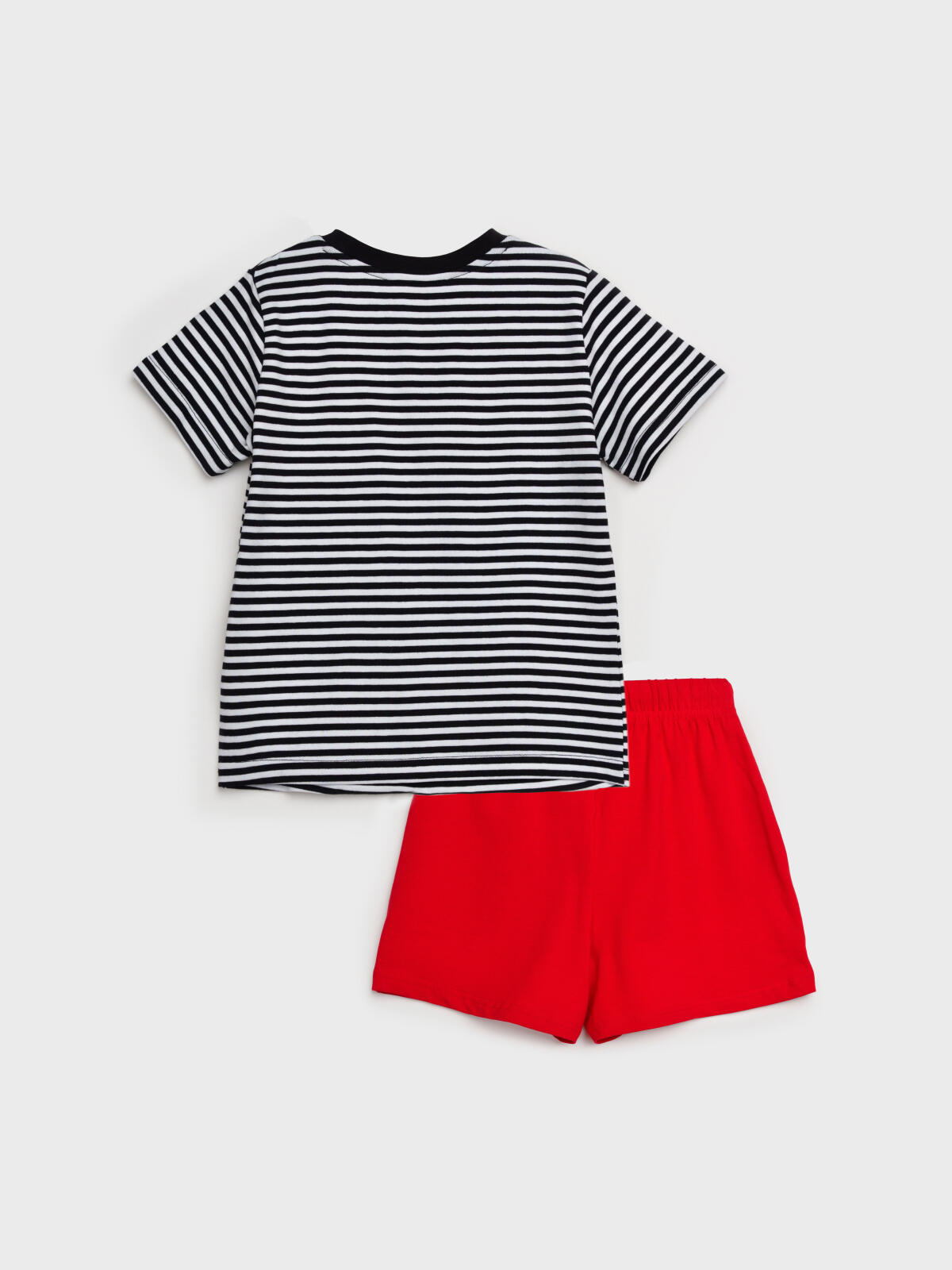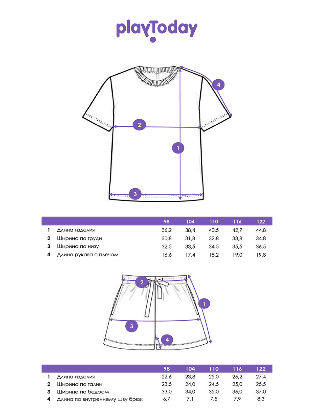 Костюм детский для девочки. Футболка оверсайз и шорты из эластичного и приятного на ощупь трикотажа. Шорты на резинке со шнурком. Высокое содержание хлопка 95%. Благодаря наличию эластана в составе ткани изделие держит форму и меньше мнется. Модель выполнена из качественного и приятного на ощупь трикотажа.