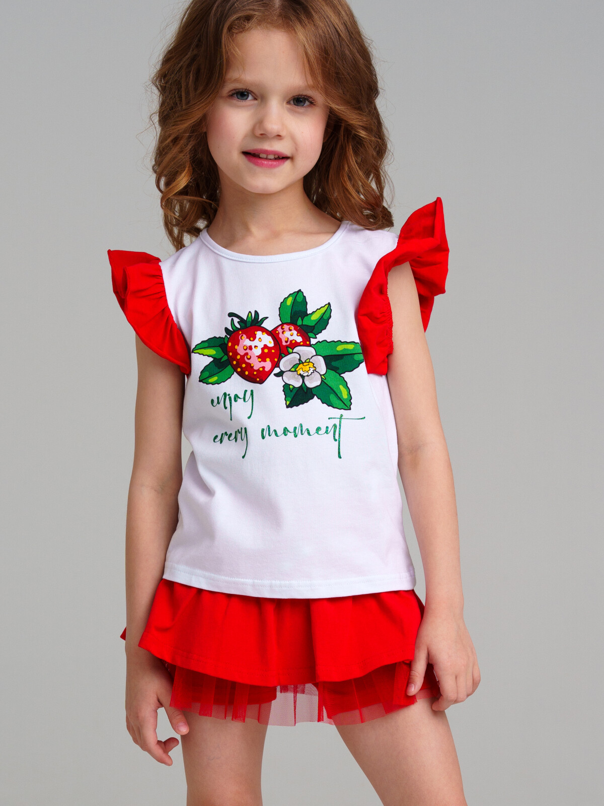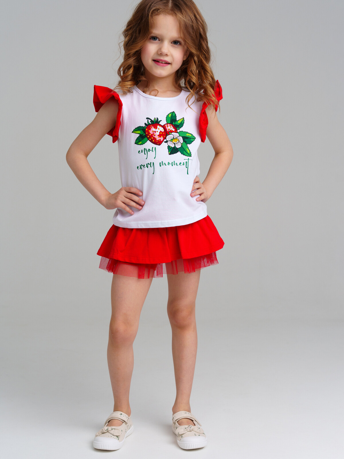 Комплект: футболка, юбка-шорты из качественного и приятного на ощупь трикотажа джерси. Высокое содержание хлопка 95%. Благодаря наличию эластана в составе ткани изделие проще в уходе и держит форму. Эластичный пояс со шнурком. Оптимальная посадка, юбка-шорты не сползает при движении.