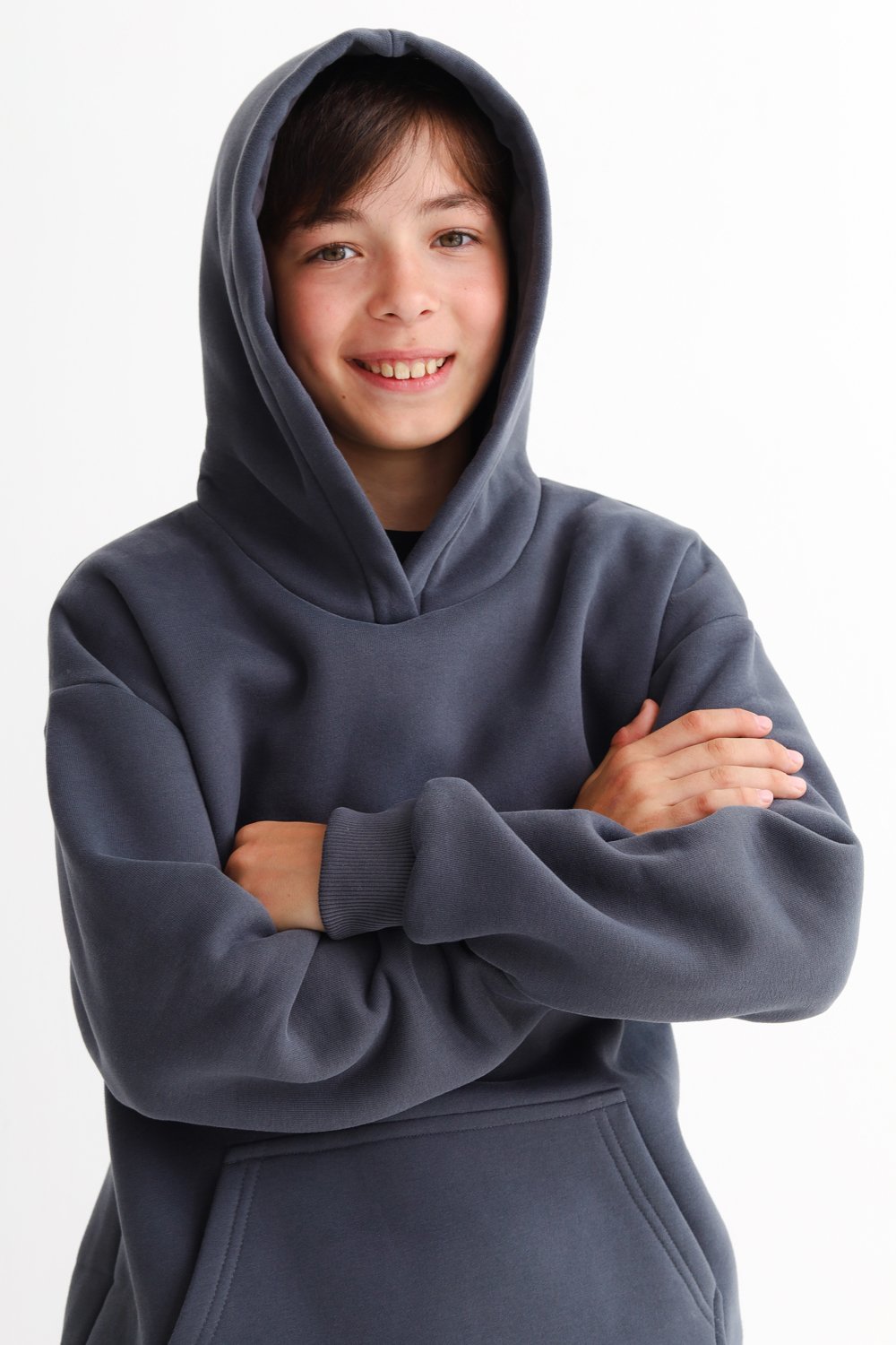 ** Особенность изделий из футера с начесом – пилингование изнаночной стороны изделия и прилипание ворсинок к телу и одежде при первом использовании, что является нормой для данного типа ткани.