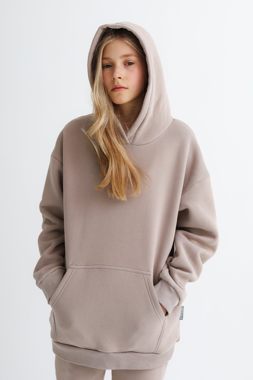 Комплект свободного кроя обеспечит комфорт в каждом движении. Худи с капюшоном и карманом-кенгуру. Брюки с поясом на резинке со шнуром и карманами по бокам.