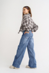 Брюки с мягким поясом на резинке и шнуром, без бокового шва, на правой задней половинке обработан прямоугольный накладной карман со скругленными углами.