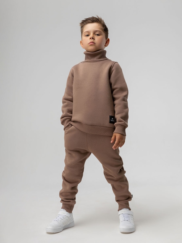 Материал футер трехнитка с начесом Состав 80% хлопок 20% полиэстер Детский костюм. Толстовка с воротником-стойка, рукава на манжетах, полуприлегающий покрой. Брюки- джоггеры, детали: пояс - эластичная резинка, низ изделия- манжеты. Состав: футер трехнитка с начесом 80% хлопок 20% полиэстер