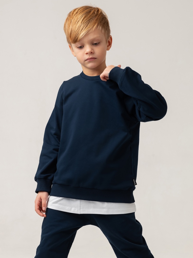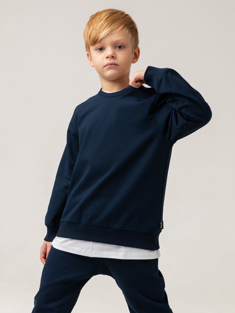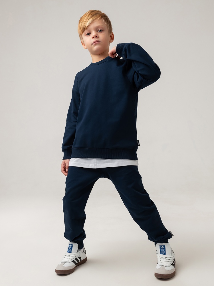 Материал футер двухнитка Состав 92% хлопок 8% лайкра Костюм детский. Свитшот, полуприлегающий покрой, рукава на манжетах, Брюки- джоггеры. Детали: пояс - эластичная резинка, низ изделия- манжеты, карманы с отрезным бочком. Состав: футер двухнитка 92% хлопок 8% лайкра