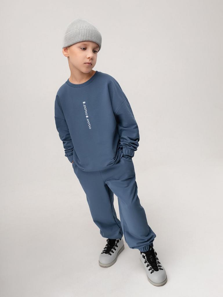 Артикул 11-363МU Состав 92% хлопок 8% лайкра Материал футер двухнитка Костюм: свитшот и брюки. Полуприлегающий свитшот, рукава на манжетах. Брюки- джоггеры, пояс - эластичная резинка, низ изделия- манжеты, карманы с отрезным бочком.