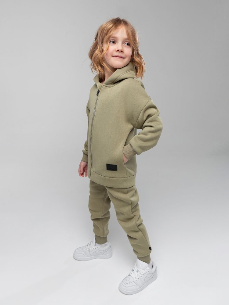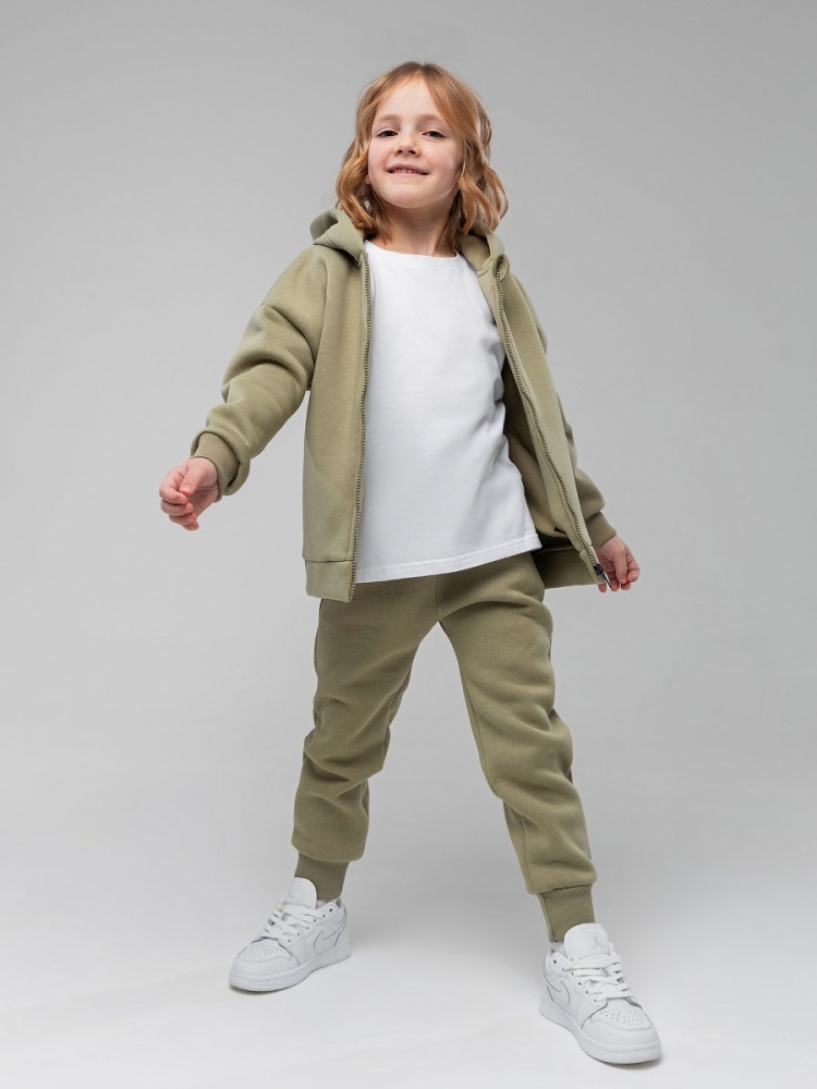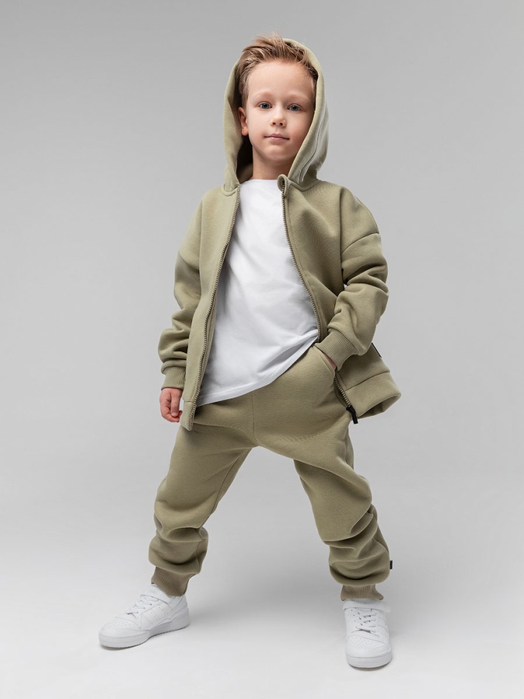Материал футер трехнитка с начесом Состав 80% хлопок 20% полиэстер высота упаковки, мм 4 Костюм детский. Толстовка: свободный покрой, застежка - молния, рукава на манжетах, защитная планка на молнии, несъемный капюшон, прорезные карманы. Брюки- джоггеры, детали: пояс - эластичная резинка, низ изделия - манжеты, карманы с отрезным бочком. Состав: футер трехнитка с начесом 80% хлопок 20% полиэстер