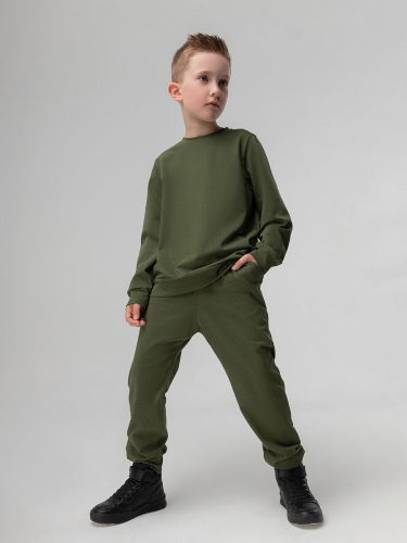 Материал кулирная гладь Состав 92% хлопок 8% лайкра Детский трикотажный костюм. Свитшот без застежек, округлый вырез горловины, свободный покрой, длинный рукав. Брюки-джоггеры, низ на манжетах, по бокам карманы с отрезным бочком. Состав: кулирная гладь 92% хлопок 8% лайкра