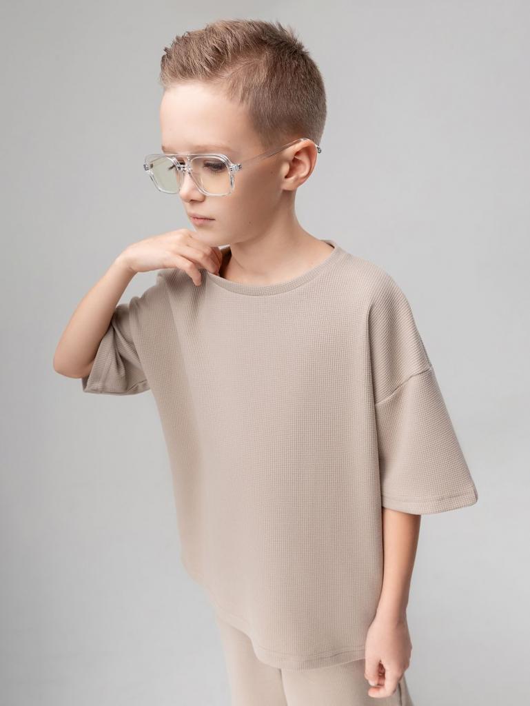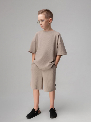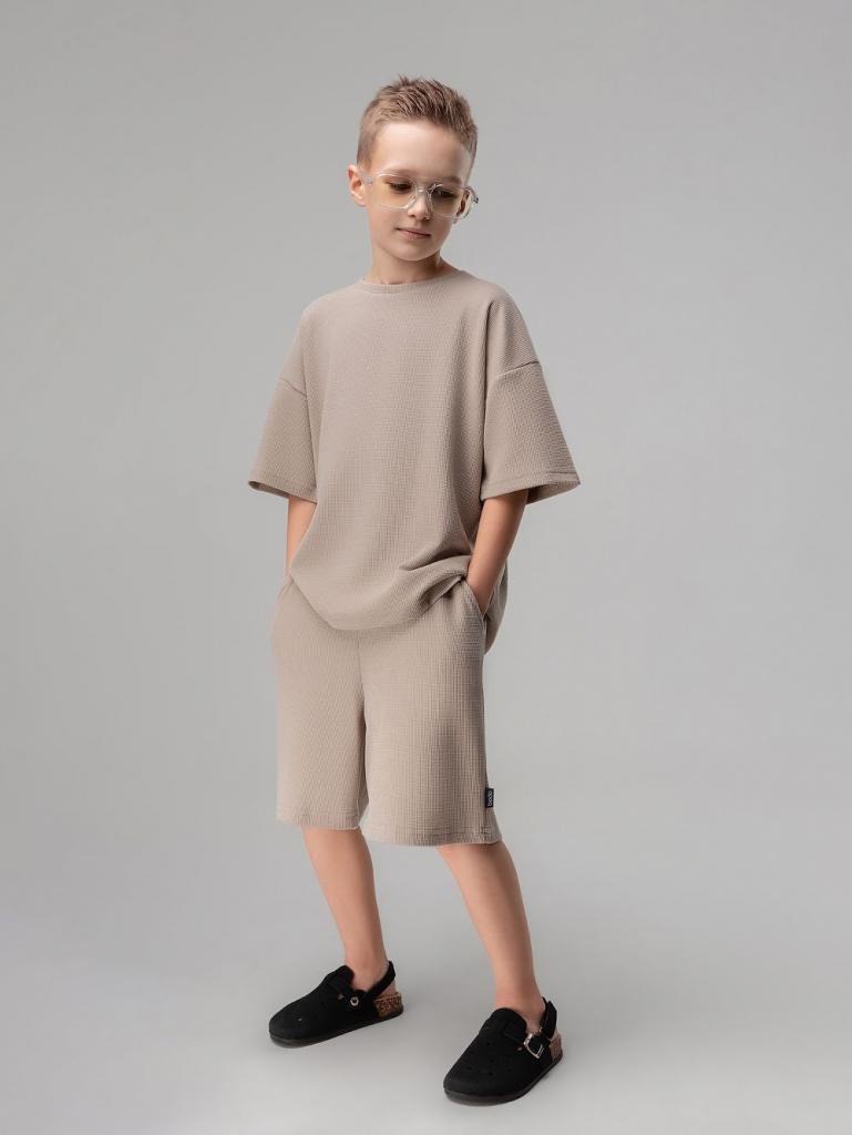 Артикул 11-624MU Состав 92% хлопок 8% лайкра Материал кулирная гладь Костюм из вафельной кулирки: футболка и шорты. Футболка свободного силуэта с коротким рукавом. Шорты прямые, свободные с боковыми карманами.