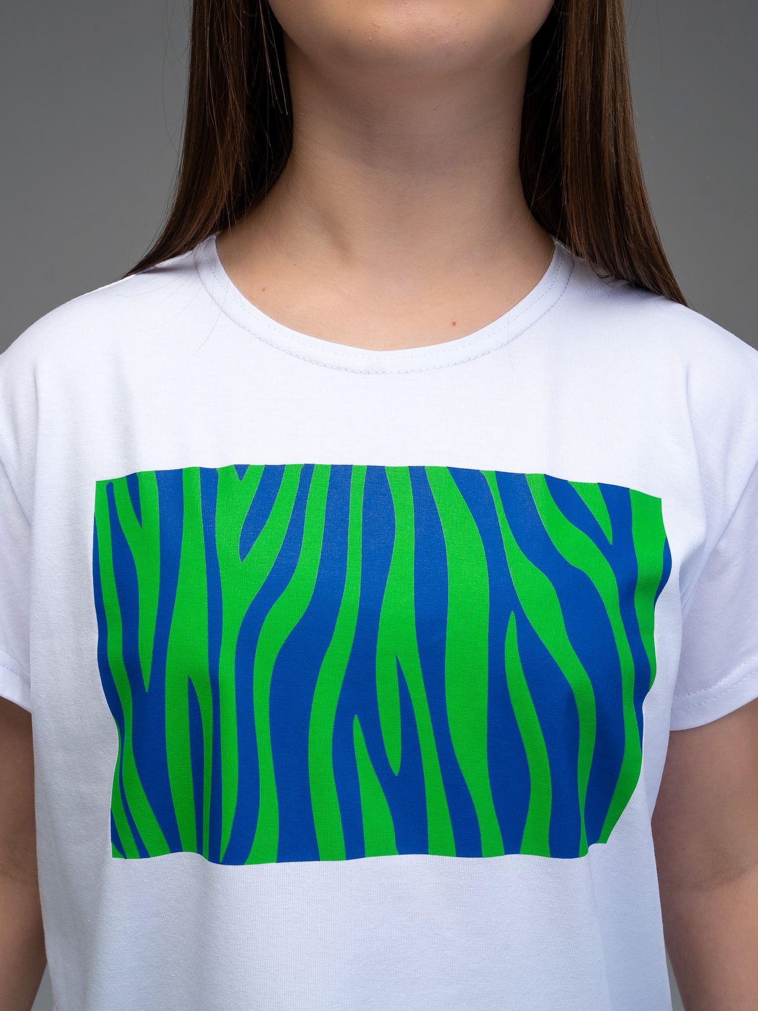 Костюм двойка для девочки из футера белого цвета для девочки состоит из футболки свободного силуэта со спущенной линией плеча, рукавами до уровня локтя и брюк- клеш. На груди футболки- яркий анималистичный принт. Костюм двойка- это отличный выбор для создания модного и стильного летнего образа. Превосходное сочетание практичности и удобства, этот костюм станет незаменимым элементом гардероба Вашей девочки. Привлекательный, летний дизайн и свободная посадка обеспечивают комфорт даже в самые жаркие дни.