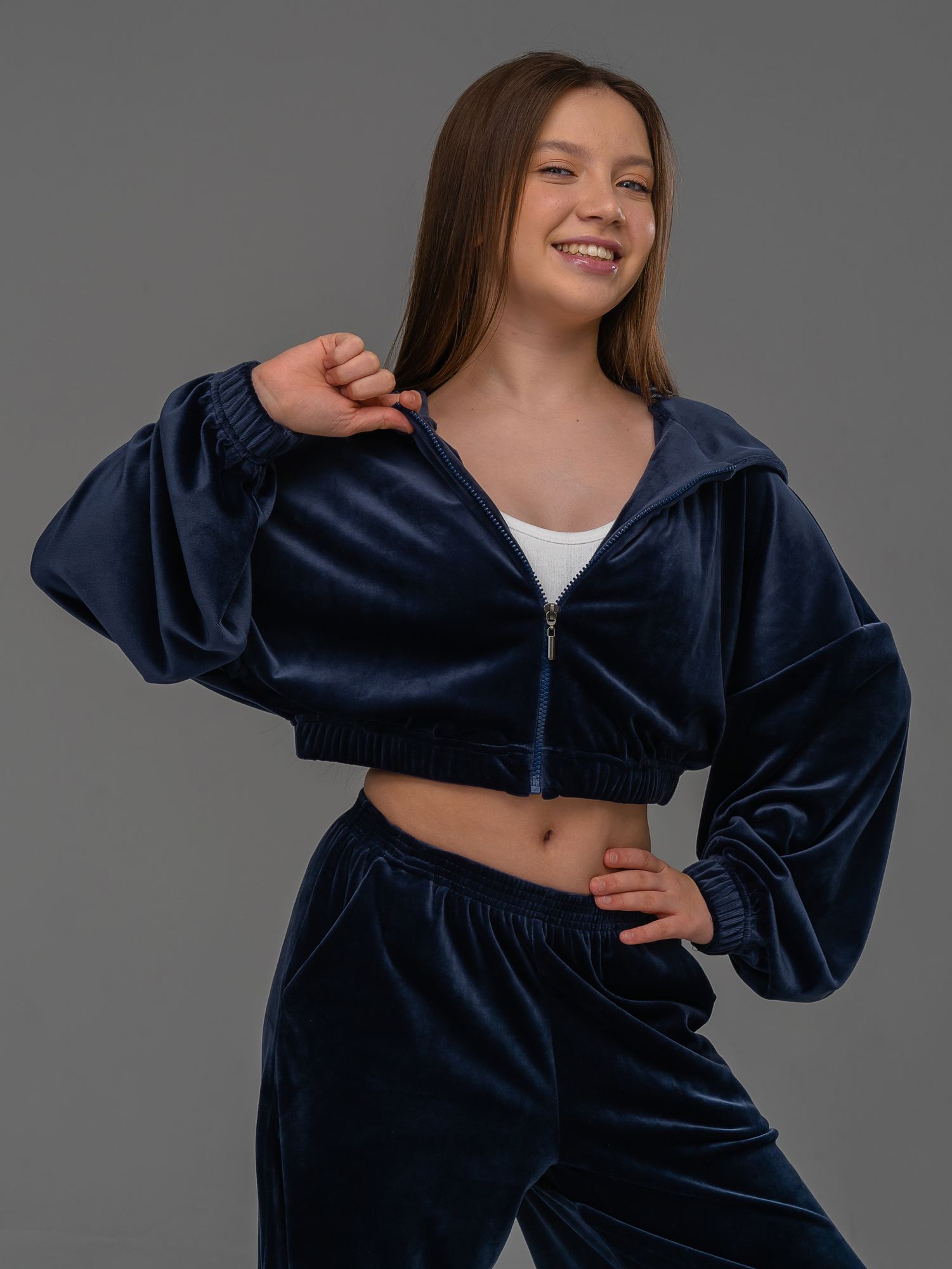 Хотите, чтобы ваша девочка выглядела стильно, комфортно и ярко в любое время года? Тогда спортивный костюм из велюра темно-синего цвета для девочки - это то, что вам нужно! Костюм от российского производителя ""Looklie"" сочетает в себе все лучшие качества: стильный дизайн, высокое качество материалов и удобный крой.
