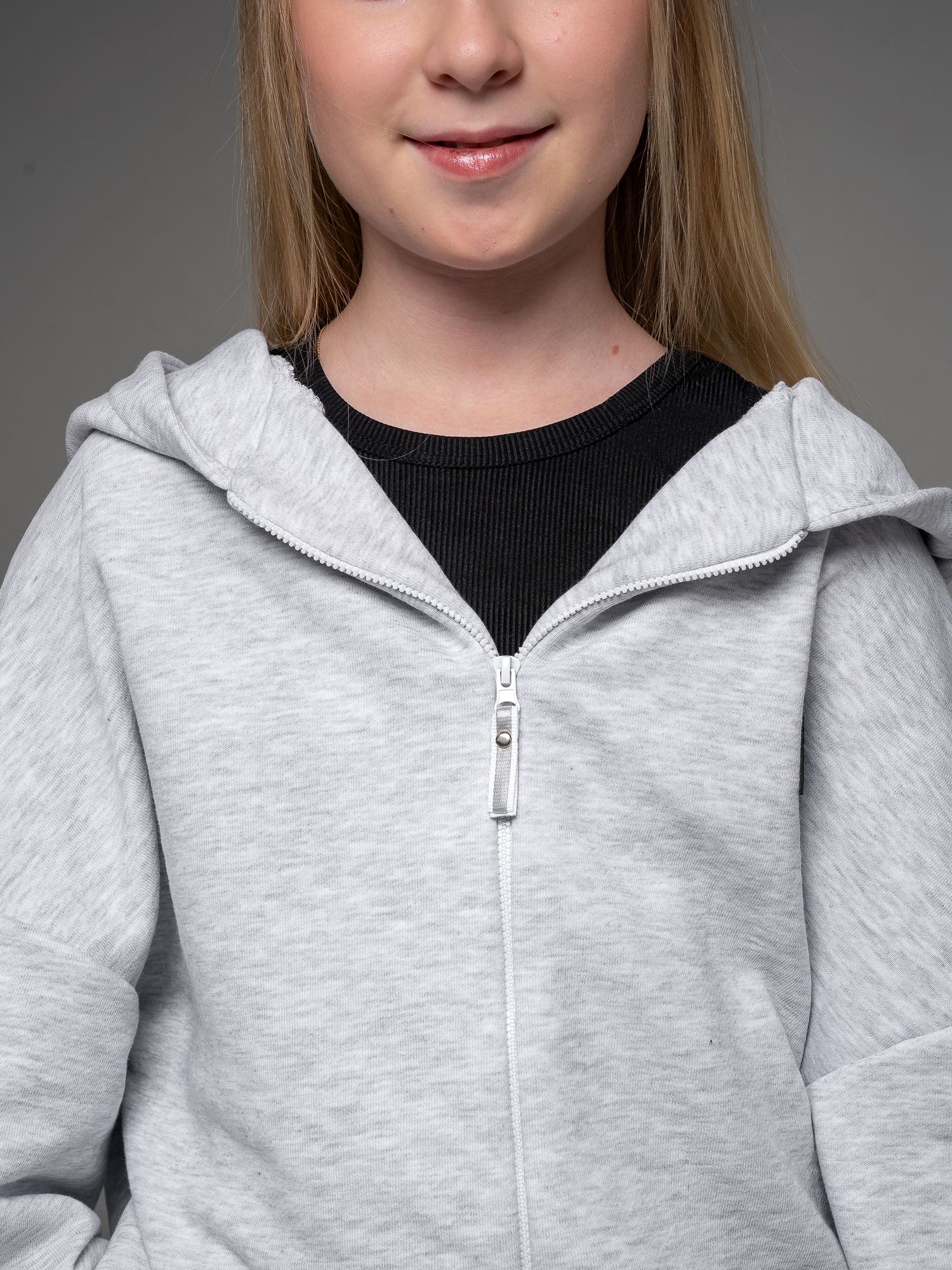 Спортивный костюм из футера(3х нитка) серого цвета для девочки свободного силуэта - идеальный выбор для активного отдыха и занятий спортом!