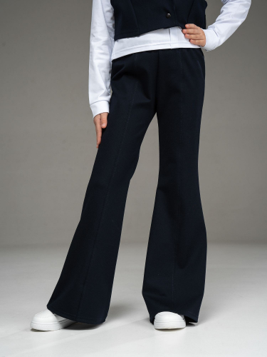 Школьный трикотажный костюм из джерси черного цвета для девочки от бренда Looklie — стильное и комфортное решение для школы, праздников и повседневной носки. Современный школьный костюм для девочки сочетает элегантность и удобство, соответствуя школьному дресс-коду. Комплект состоит из укороченного жилета и брюк- клеш. Жилет выполнен из мягкого и износостойкого трикотажа джерси, имеет воротник и лацканы пиджачного типа, что придаёт образу аккуратный и модный вид. Застежка на кнопку удобна и практична, позволяет быстро надевать и снимать изделие. Брюки- клеш облегают по бедрам и эффектно расклешены от колена, визуально вытягивая силуэт. Рельефный шов по центру передних половинок брюк добавляет стройности и подчеркивает дизайн. Эластичный пояс на резинке обеспечивает комфортную посадку и свободу движений в течение всего дня. Трикотажный костюм отлично подходит как школьная форма для девочки, а также для торжественных мероприятий, фотосессий и повседневной носки. Материал не сковывает движения, приятен к телу и хорошо держит форму после стирки. Создайте современный и уверенный образ для вашей школьницы — школьный костюм с жилетом и брюками клеш станет любимым элементом гардероба.