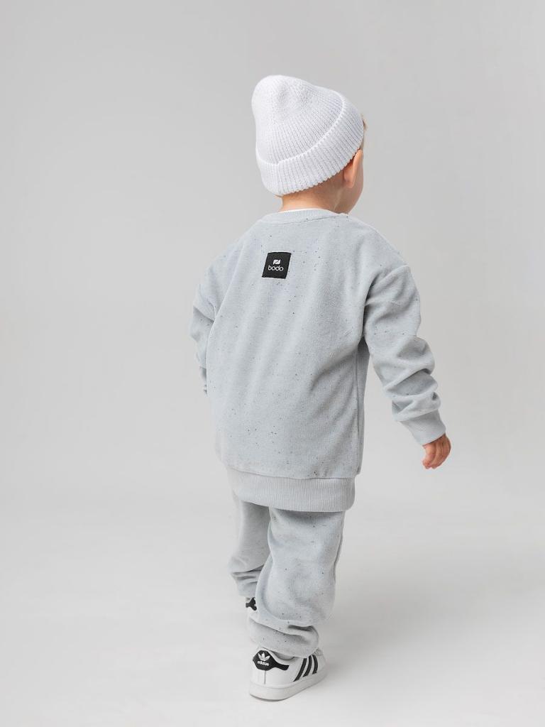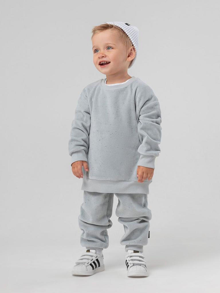 Артикул 21-113MU Материал велюр Состав 80% хлопок 20% полиэстер Костюм для детей ясельного возраста. Толстовка без подкладки, прямого силуэта, с притачным поясом по низу изделия, со спущенным плечом и втачными рукавами с притачной манжетой. Горловина округлой формы. Брюки прямые на притачном поясе с внутренней резинкой. Брюки с манжетой.