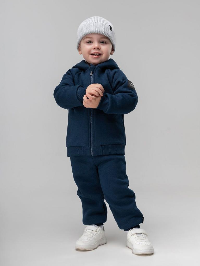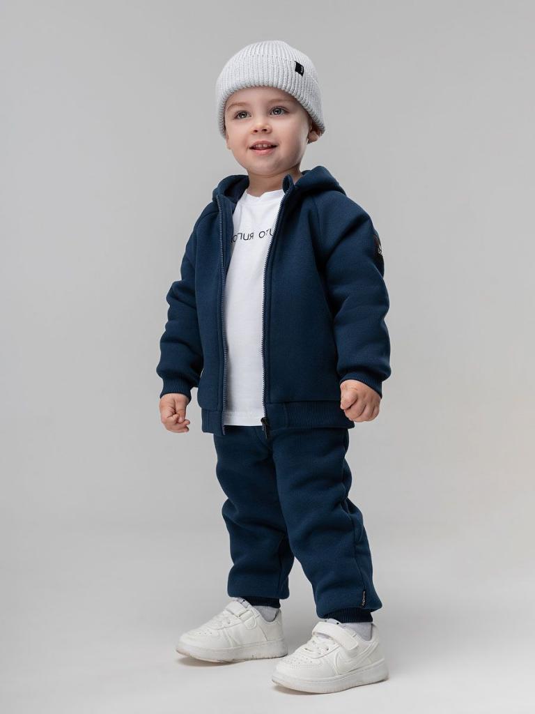 Артикул 21-23MU Материал футер трехнитка с начесом Состав 80% хлопок 20% полиэстер Костюм детский в начесом: толстовка и брюки. Толстовка с несъемный капюшоном на молнии, рукава на манжетах. Брюки- джоггеры, детали: пояс - эластичная резинка, низ изделия- манжеты.