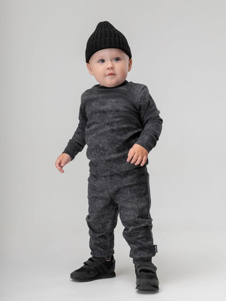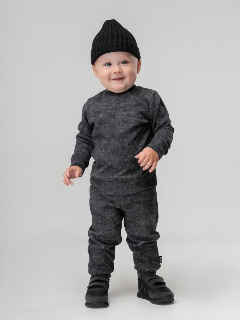 Артикул 21-82MU Материал рибана Состав 92% хлопок 8% лайкра Костюм для малышей. Свитшот, полуприлегающий покрой, рукава на манжетах, Брюки- джоггеры. Детали: пояс - эластичная резинка, низ изделия- манжеты.