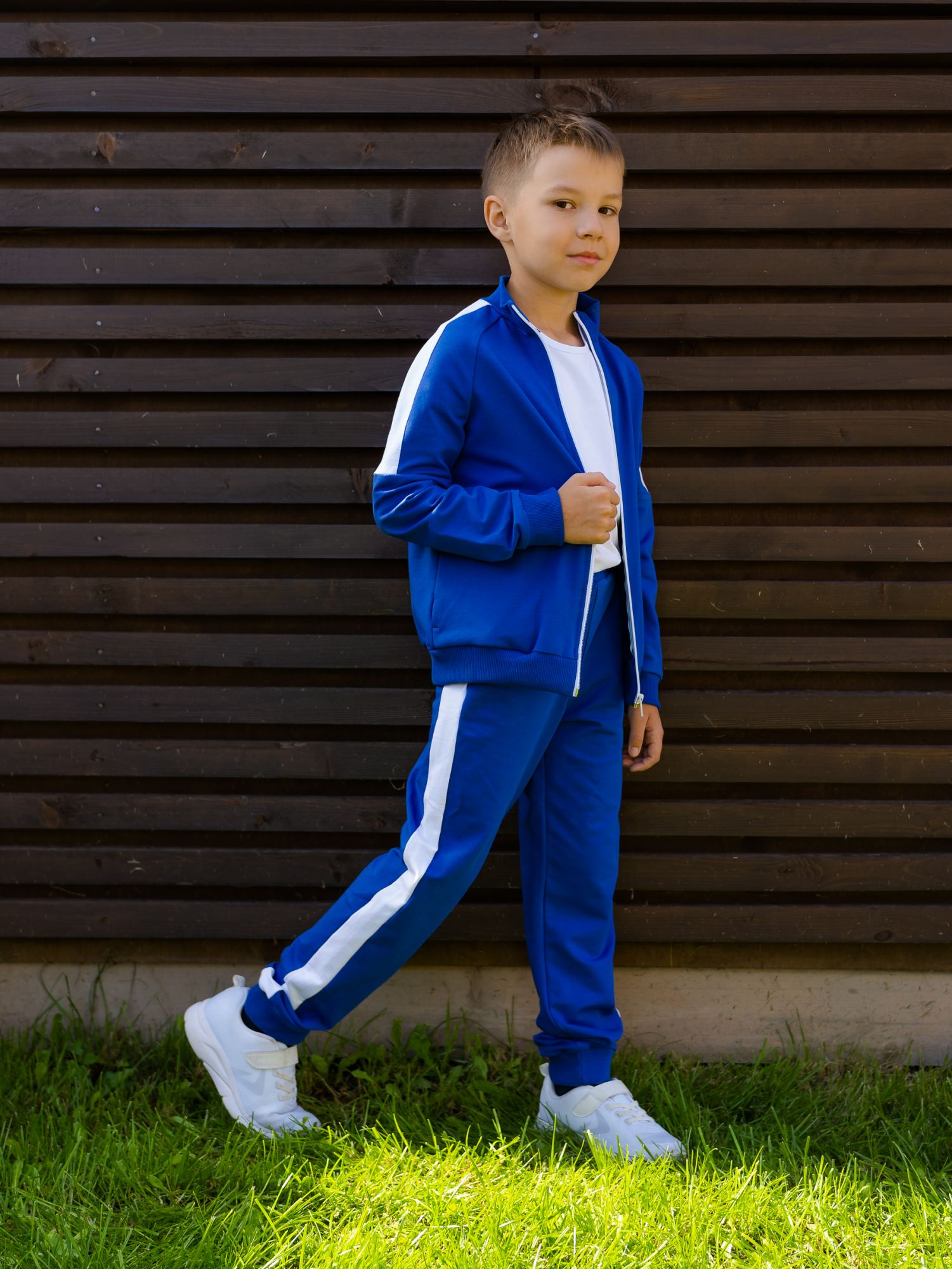 Удобный и стильный костюм-двойка , состоит из толстовки и брюк. Толстовка с застежкой- молнией, с длинными рукавами, с карманами в боковых швах. Воротник-стойка из кашкорсе. Прямые брюки с боковыми карманами. Пояс на широкой эластичной резинке. Рукава толстовки и брюки отделаны широкими лампасами. Низ толстовки, брюк и рукава на манжетах. Изделие выполнено из трикотажа премиального качества - ПЕНЬЕ, с содержанием хлопка более 92%