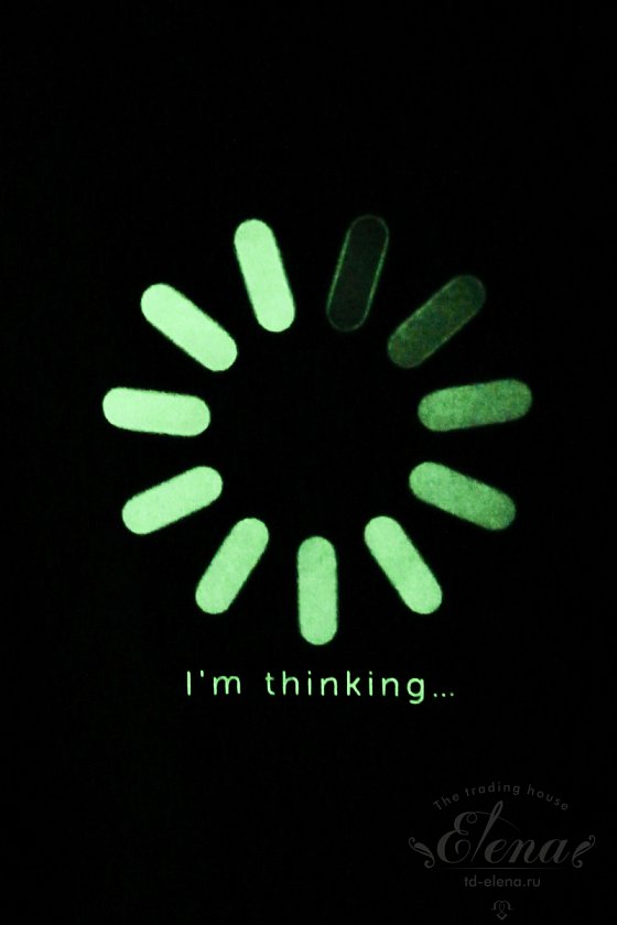 Костюм выполнен из кулирки с добавлением лайкры, состоит из футболки и брюк. Футболка свободного силуэта, со спущенной линией плеча. Спереди нанесён принт, светящийся в темноте. Пояс брюк и манжеты внизу на резине.