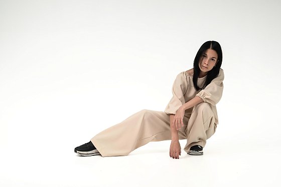 Костюм выполнен из искусственного льна. Стильный комплект состоит из блузки с регулируемыми по длине рукавами на резинке и брюк-палаццо на высокой посадке. Брюки дополнены боковыми карманами и эластичным поясом со шнуром для удобной посадки. Идеальный ансамбль для создания модного и комфортного образа.
