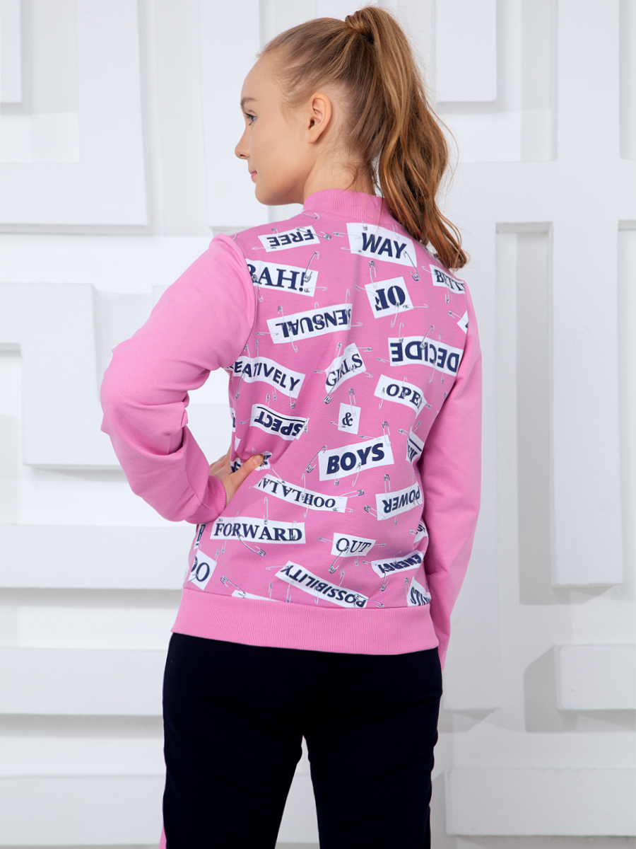 Изделие изготовлено из трикотажного полотна.Эксклюзивный рисунок привлечёт внимание самых требовательных юных модниц.Изделие предназначено для занятий спортом и прогулок,яркий и удобный.