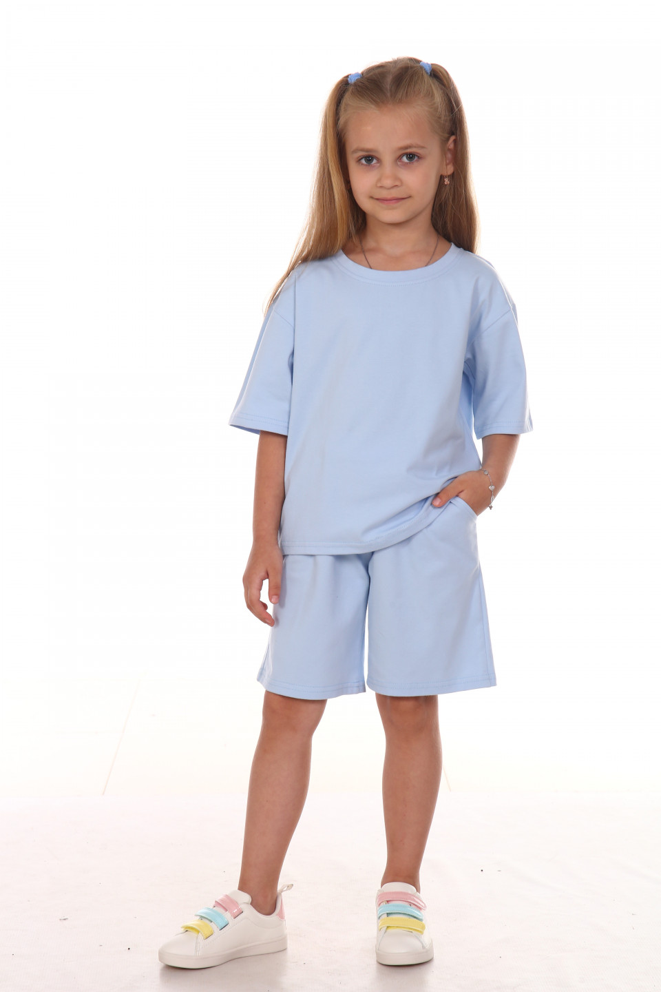 Невероятно нежный и стильный костюм на лето-осень. Футболка с удлиненным рукавом и О-образной горловиной. Шорты широкие на резинке, длина до колена, по бокам удобные кармашки. Материал приятный на ощупь. Прекрасно подойдет для летних прогулок и спортивного отдыха.