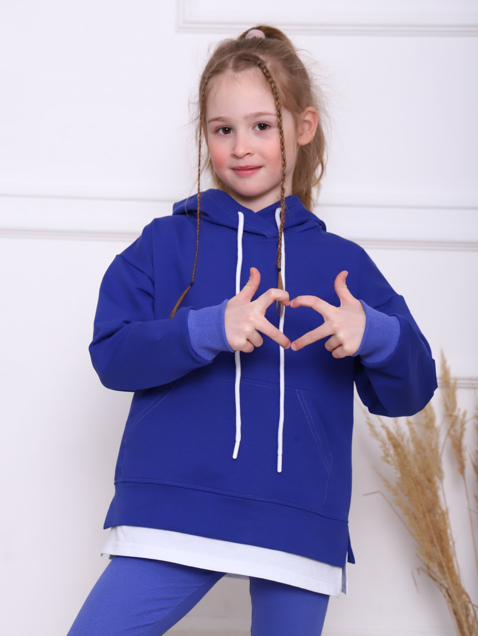 Костюм спортивный для девочки и для девочек подростков с принтом. Комплект представляет собой брюки и свитшот с капюшоном. Спортивные штаны джоггеры без карманов. Брючки на мягкой широкой эластичной резинке, которая не передавливает кожу, подстраивается под положение тела ребенка и его движения, обеспечивая комфорт на целый день. Толстовка с длинными рукавами и с карманом кенгуру с надписью на спине. Повседневный костюм детский изготовлен и из натурального гипоаллергенного 80% хлопка, хб с добавлением 20% полиэстера для сохранения формы изделия после стирки и во время носки.