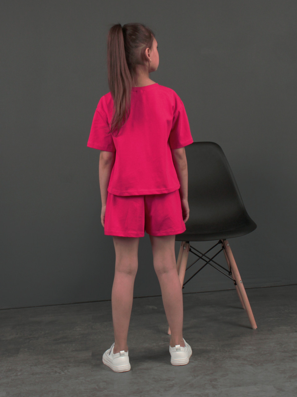 Костюм для девочки состоит из футболка и шорт. Костюм нарядный отлично подходит для путешествий, прогулок и занятий спортом. В нем будет очень комфортно за счет натурального состава ткани. Удобный крой костюма станет прекрасной составляющей повседневного образа жизни ребенка. Идеальный подарок для ребенка. Комплект для девочки идёт в размер. Рекомендована бережная стирка при температуре не выше 30 градусов, деликатный или ручной режим, вывернув изделие на изнаночную сторону.
