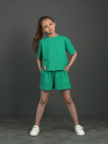 Костюм для девочки состоит из футболка и шорт. Костюм нарядный отлично подходит для путешествий, прогулок и занятий спортом. В нем будет очень комфортно за счет натурального состава ткани. Удобный крой костюма станет прекрасной составляющей повседневного образа жизни ребенка. Идеальный подарок для ребенка. Комплект для девочки идёт в размер. Рекомендована бережная стирка при температуре не выше 30 градусов, деликатный или ручной режим, вывернув изделие на изнаночную сторону.