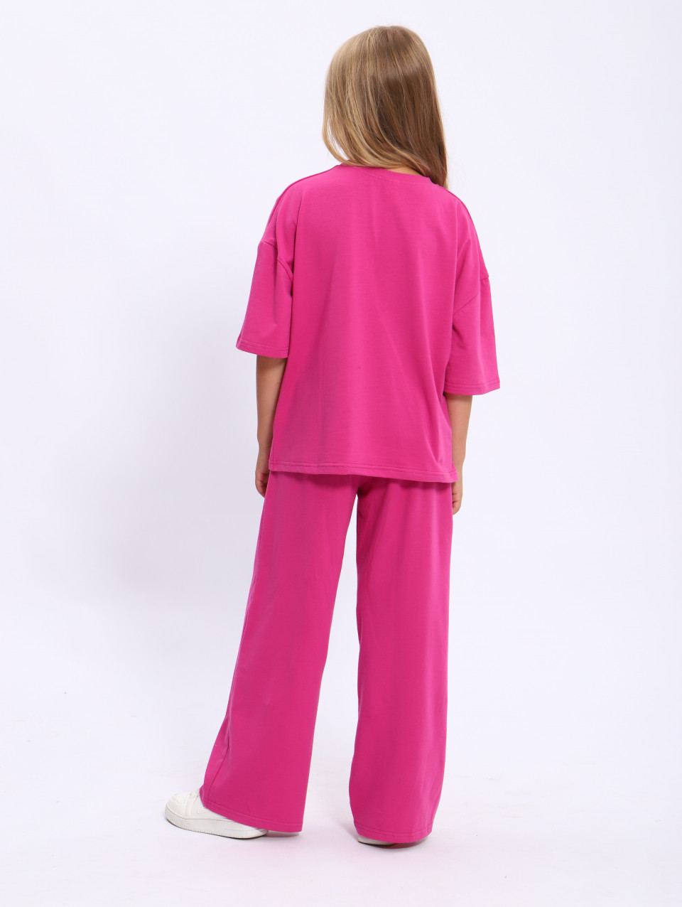 Костюм для девочки состоит из футболки и брюк. Спортивный костюм отлично подходит для путешествий, прогулок и занятий спортом. Как зимой так и летом в нем будет очень комфортно и тепло за счет натурального состава и достаточно плотной ткани. Удобный крой костюма станет прекрасной составляющей повседневного образа жизни ребенка. Идеальный подарок для ребенка. Костюм идет в размер. Материал кулирка с лайкрой.