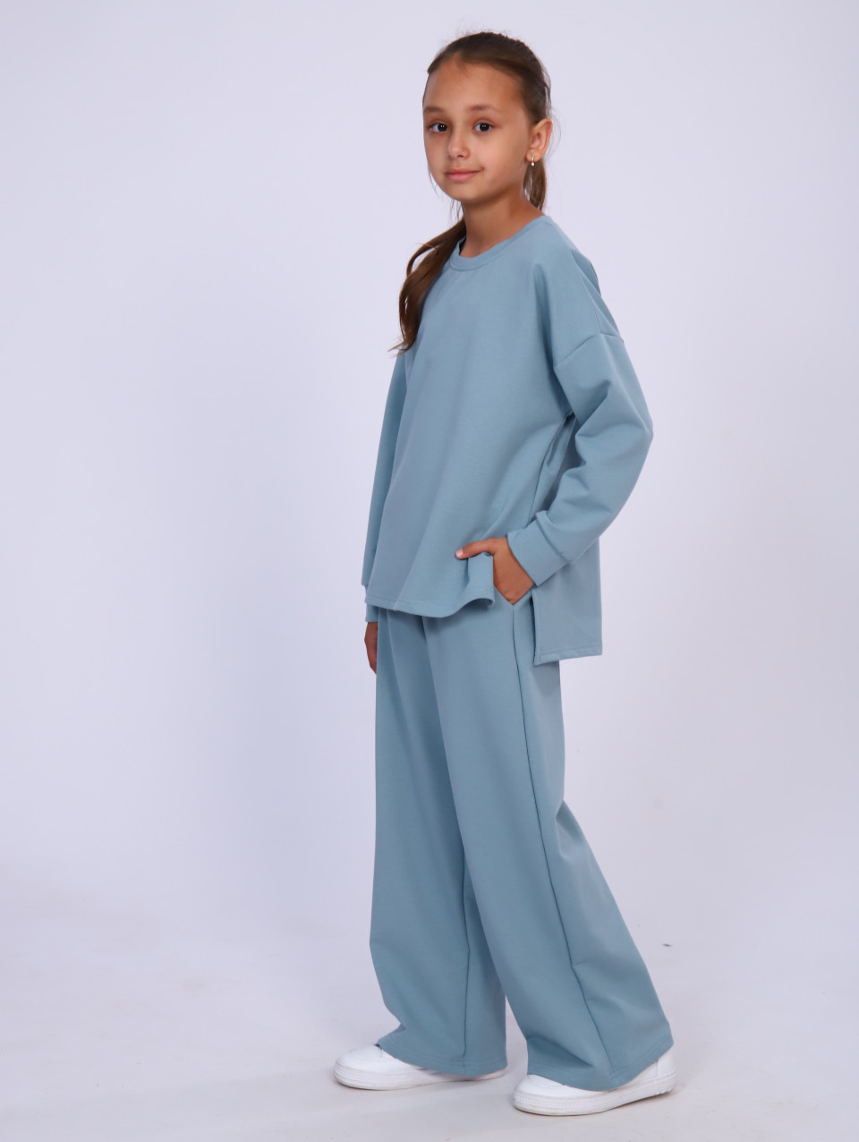 Детский спортивный костюм для девочки подростка которая стремиться быть модной и стильной, выполнен из натурального трикотажа премиум качества футер пенье. Размерный ряд широкий от 128 до 164 размера. Модные и актуальные в этом сезоне расклешенные брюки паллацо или брюки кюлоты обязательно дополнят образ модной девочки. Костюм из футер для девочки . Летний костюм. Костюм на теплую осень для фотосессии. Школьный костюм подростковый. Большое однотонное худи и широкие штаны. Комплект двойка состоит из лонгслива оверсайз со спущенным плечом и широкими брюками. Легкий летний костюм для девочки с брюками палаццо выполнен из турецкого трикотажа. Легкий и плотный костюм не покрывается катышками, имеет базовую свободную кофту худи с длинным спущенным рукавом, капюшон свободного кроя, завязки на кофте и брюки палаццо свободного кроя клеш от бедра подойдут в школу и на прогулку, а также как повседневная одежда, для спортивных танцев, на физкультуру в школу, для поездок. Резинка в штанах не перекручивается. Хлопковый качественный костюм для девушки тинейджера сохраняет первоначальный вид даже после многочисленных стирок, он детский школьный стиляга карго. Летний и весенний вариант костюм для девочки представлен в разной цветовой гамме. Костюм для девочки подростка и футболкой оверсайз - тренд 2023 года. Неотъемлемая вещь в гардеробе каждой модницы, прекрасный подарок на день рождения, именины, новый год. Подарок от бабушки,подарок от дедушки, подарок для крестницы, подарок для дочки. Для максимального комфорта вашего ребенка брюки клеш снабжены глубокими карманами. Комплект можно носить как самостоятельно, так и комбинировать с другими базовыми вещами. Трикотажный комплект подойдет для девочек всех возрастов и размеров, обеспечивая удобство для малыша и нарядный вид для ребенка подростка.