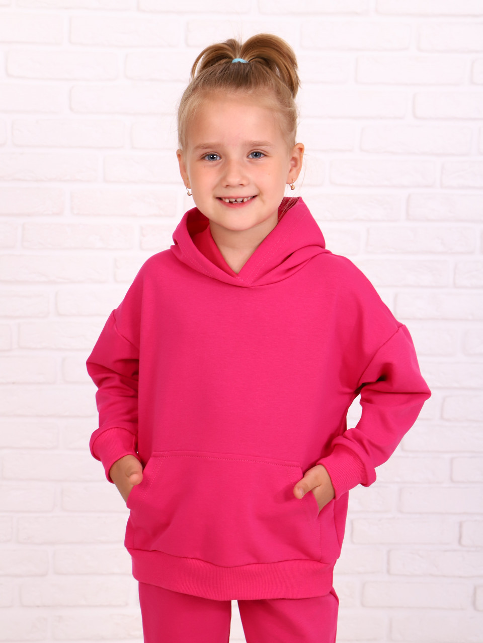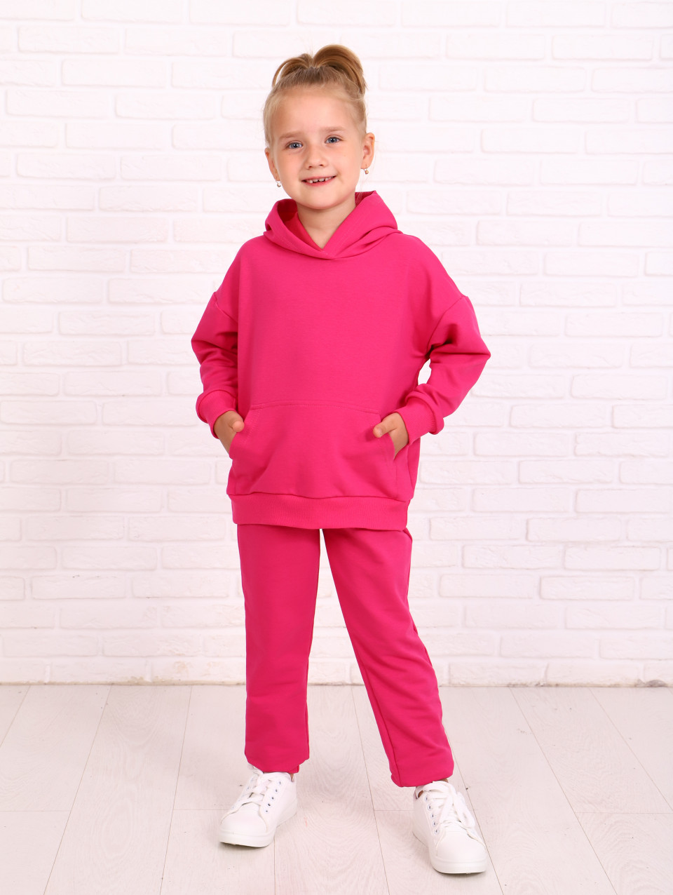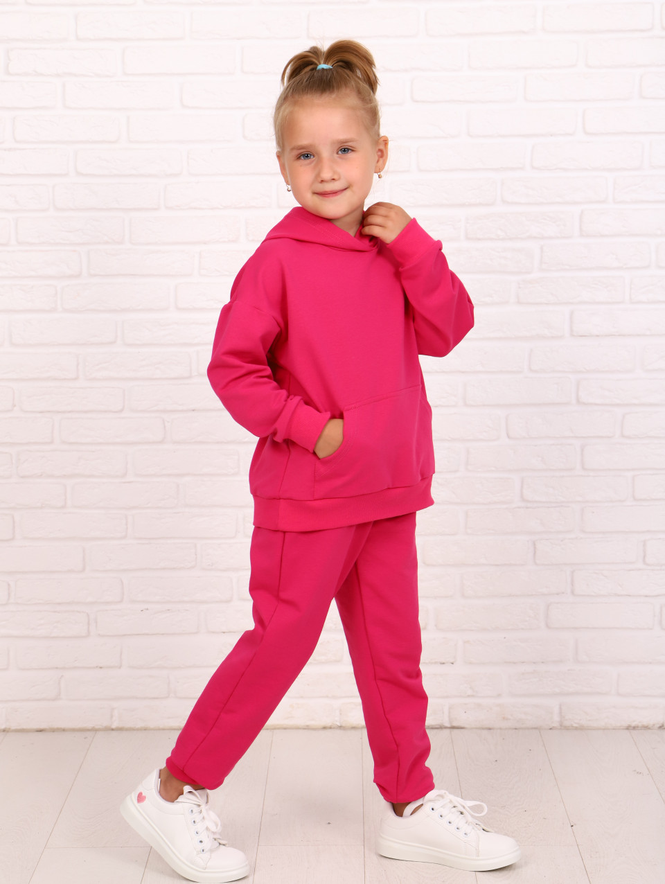 Толстовка свободная с капюшоном и карманом "кенгуру". Брюки прямого кроя снизу на резинке. Удобную посадку брюк обеспечивает поясная резинка.  Такой костюм прекрасно подойдёт как для спорта, так и для отдыха.