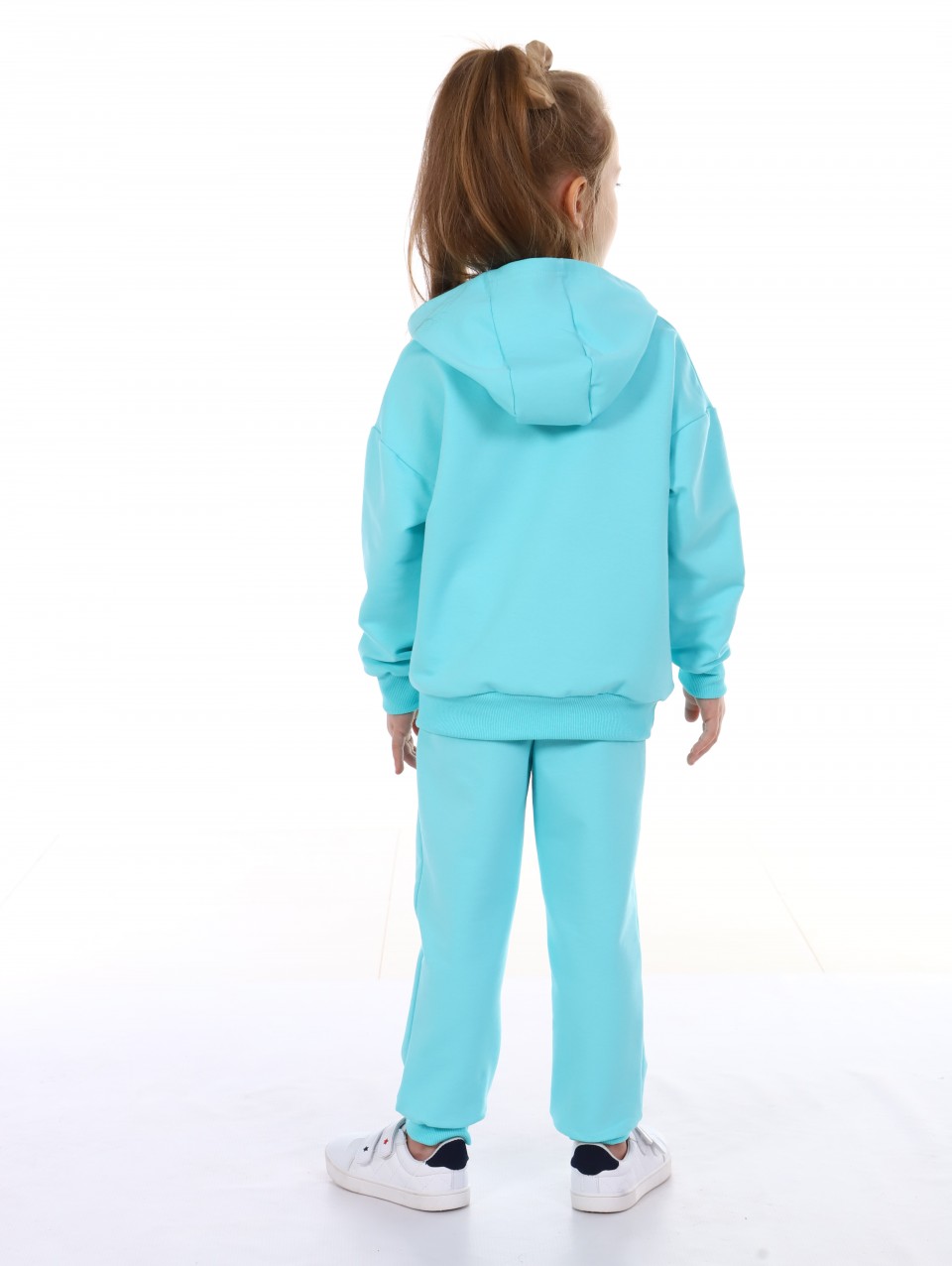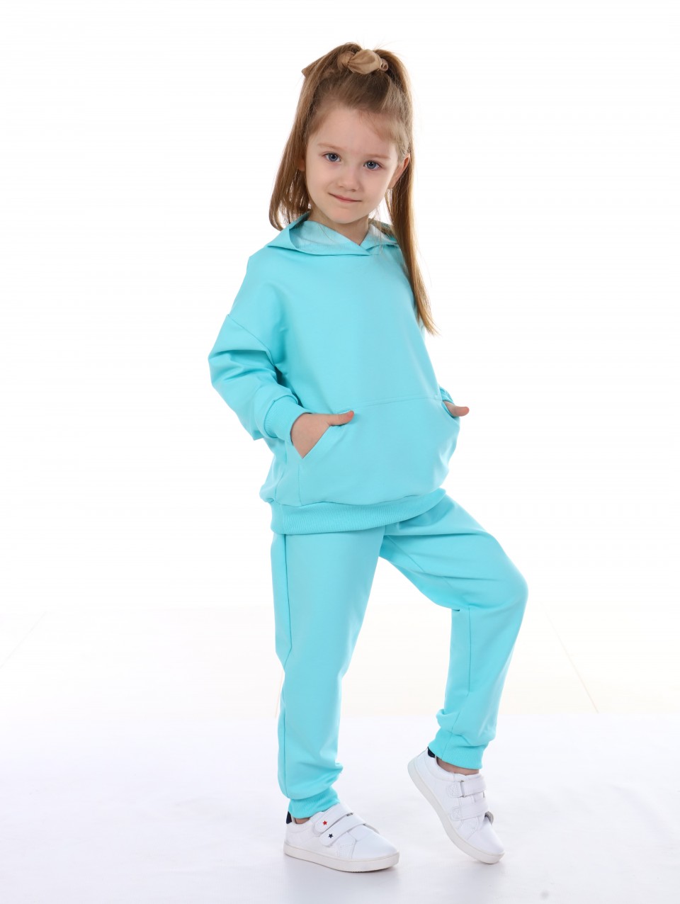 Толстовка свободная с капюшоном и карманом "кенгуру". Брюки прямого кроя снизу на резинке. Удобную посадку брюк обеспечивает поясная резинка.  Такой костюм прекрасно подойдёт как для спорта, так и для отдыха.