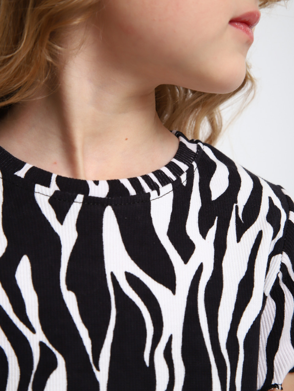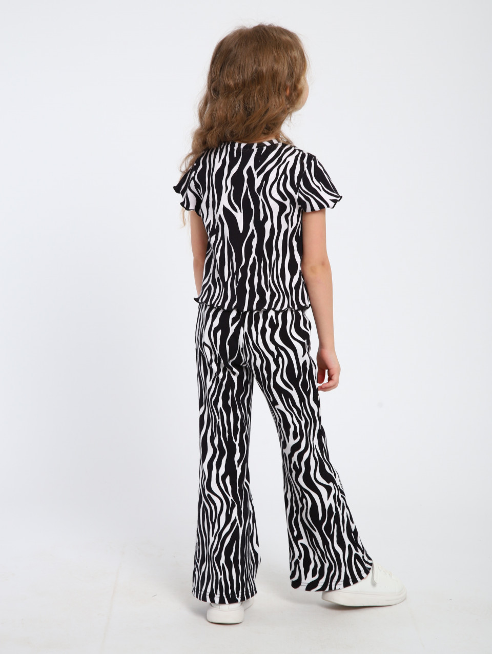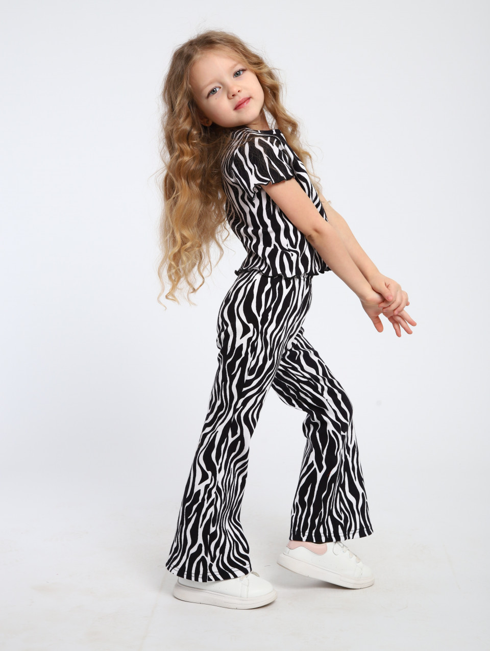 Этот очаровательный детский костюм для девочки идеально подходит для повседневной носки, будь то в детском саду, на прогулке или дома. Он сочетает в себе стиль и комфорт благодаря использованию ткани "лапша", которая обеспечивает отличную посадку и свободу движений — то, что особенно важно для активных маленьких исследовательниц. Верхняя часть костюма представлена удобной футболкой, которая отлично сидит и позволяет коже дышать. Нижняя часть — это брюки на резинке, которые легко надеваются и обеспечивают комфорт в течение всего дня. Отсутствие карманов делает их ещё более лёгкими и удобными. Эластичная резинка на поясе гарантирует мягкую и надежную посадку, а модный принт "зебра" в черно-белом цвете добавляет изюминку этому комплекту. Этот стильный и практичный костюм из хлопкового трикотажа станет отличным выбором для повседневной носки, занятий спортом или отдыха. Пусть ваша маленькая модница будет в центре внимания с этим эффектным и комфортным нарядом! Легкость ухода за материалом позволяет родителям не беспокоиться о частых стирках, сохраняя яркость цветов и форму изделия. Рекомендована бережная стирка при температуре не выше 30 градусов, деликатный или ручной режим, вывернув изделие на изнаночную сторону. Материал кашкорсе.
