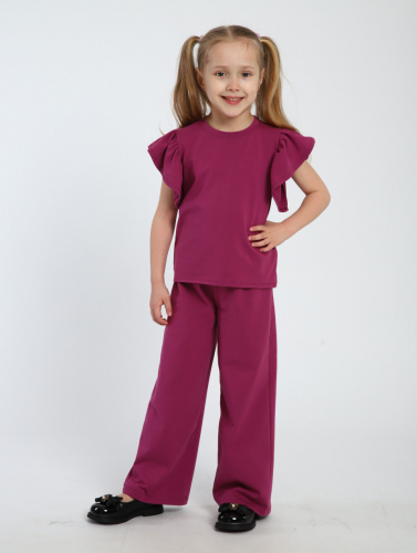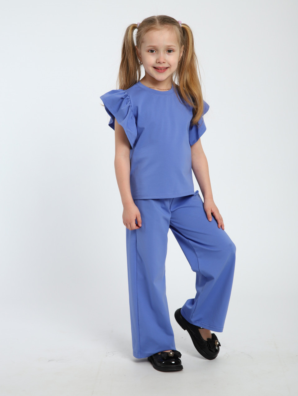 Этот очаровательный детский костюм для девочки станет идеальным выбором для посещения детского сада, прогулок на свежем воздухе или уютного времяпрепровождения дома. Сочетая в себе стиль и комфорт, он выполнен из мягкой ткани кулирка с добавлением лайкры, что обеспечивает превосходную посадку и полную свободу движений — именно то, что нужно активным малышам. Верхняя часть костюма представлена милой футболкой с рукавами-крылышками, которые придают образу нежности и игривости. Нижняя часть — это удобные брючки без карманов, которые гарантируют комфорт и уют в течение всего дня. Эластичная резинка на поясе делает процесс одевания быстрым и простым, обеспечивая идеальную посадку. Этот костюм не только практичен, но и невероятно стильный, что делает его отличным выбором для повседневной носки. Родители оценят легкость ухода за материалом: даже после частых стирок яркость цветов и форма изделия остаются неизменными. Это модный, мягкий и легкий летний комплект, который станет замечательным подарком для любой девочки. Материал кулирка с лайкрой. Рекомендована бережная стирка при температуре не выше 30 градусов, деликатный или ручной режим, вывернув изделие на изнаночную сторону.