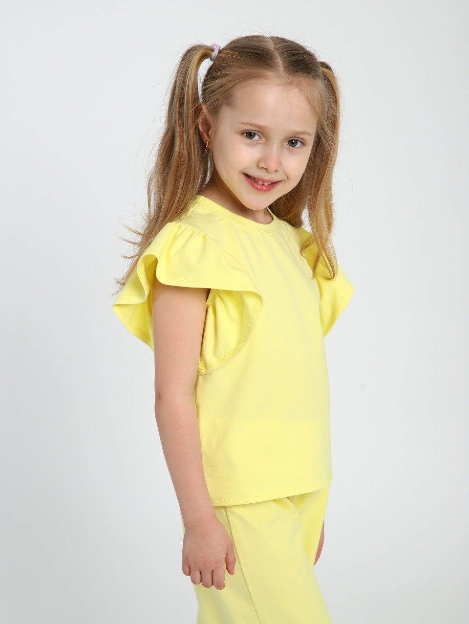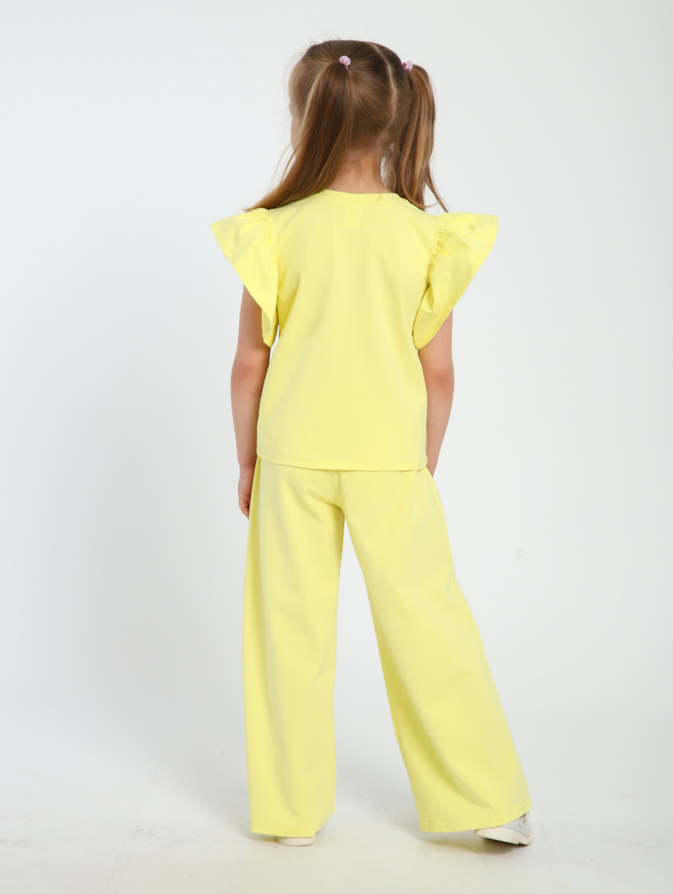 Этот очаровательный детский костюм для девочки станет идеальным выбором для посещения детского сада, прогулок на свежем воздухе или уютного времяпрепровождения дома. Сочетая в себе стиль и комфорт, он выполнен из мягкой ткани кулирка с добавлением лайкры, что обеспечивает превосходную посадку и полную свободу движений — именно то, что нужно активным малышам. Верхняя часть костюма представлена милой футболкой с рукавами-крылышками, которые придают образу нежности и игривости. Нижняя часть — это удобные брючки без карманов, которые гарантируют комфорт и уют в течение всего дня. Эластичная резинка на поясе делает процесс одевания быстрым и простым, обеспечивая идеальную посадку. Этот костюм не только практичен, но и невероятно стильный, что делает его отличным выбором для повседневной носки. Родители оценят легкость ухода за материалом: даже после частых стирок яркость цветов и форма изделия остаются неизменными. Это модный, мягкий и легкий летний комплект, который станет замечательным подарком для любой девочки. Материал кулирка с лайкрой. Рекомендована бережная стирка при температуре не выше 30 градусов, деликатный или ручной режим, вывернув изделие на изнаночную сторону.