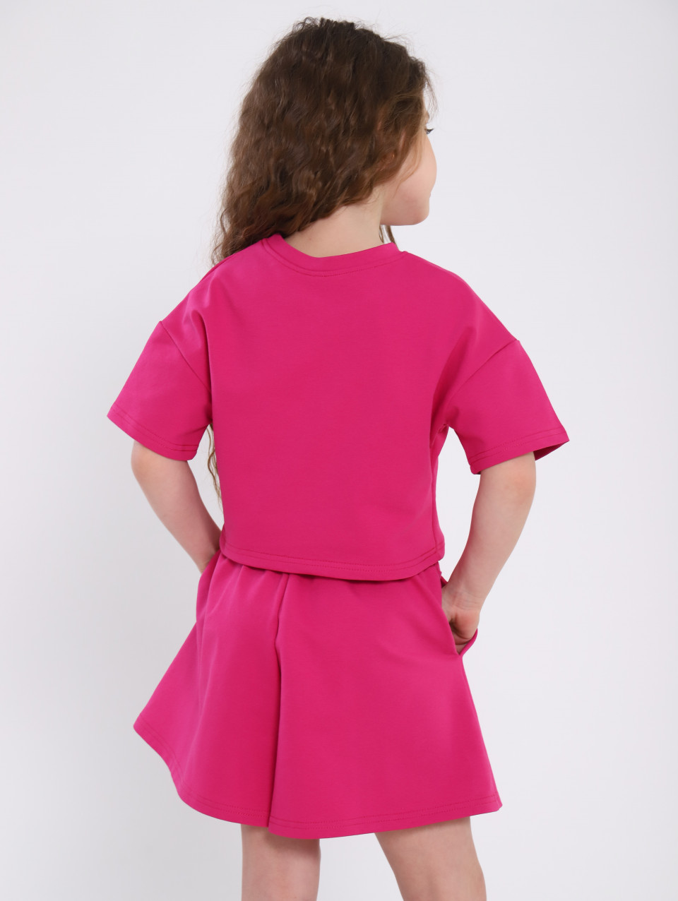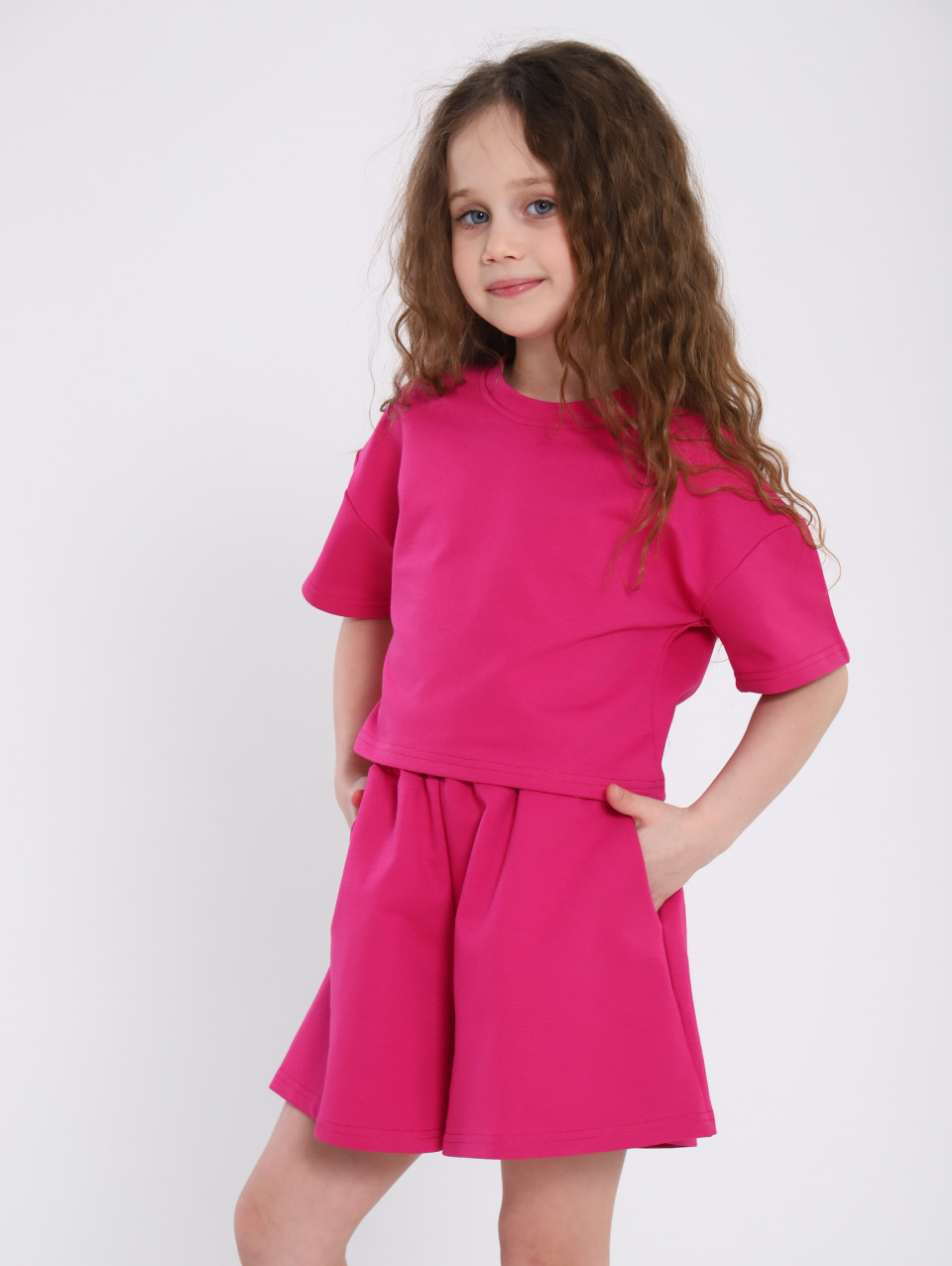 Костюм для девочки представлен в базовых расцветках, что делает его универсальным выбором для любого случая. Шорты и футболка идеально сочетаются друг с другом, создавая гармоничный и современный образ, который подойдет как для активных игр, так и для прогулок с семьей.