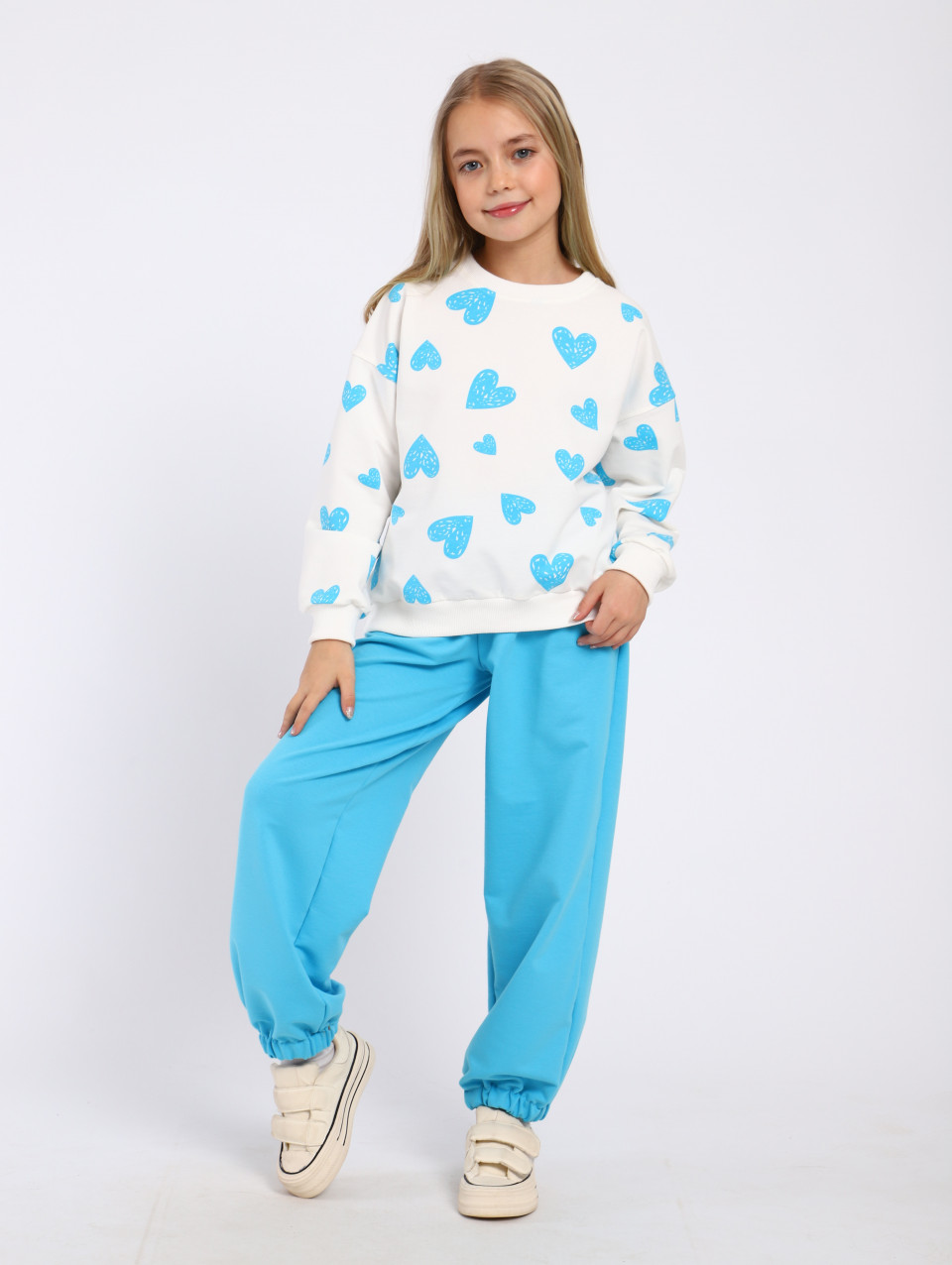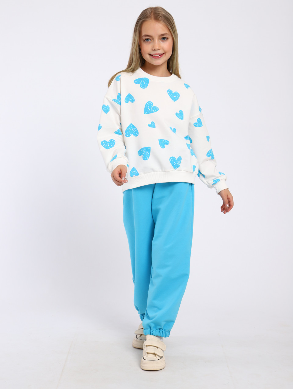 Костюм для девочки весенний, осенний трикотажный выполнен из ткани: футер 2-х нитка пенье. Прогулочный, комфортный и мягкий костюм. Базовый комплект для девочки - состоит из свитшота и брюк. Толстовка с эластичной круглой горловиной. Брюки с поясом на резинке, с манжетами, которые обеспечивают прилегание и не сковывают движений девочки. Все элементы костюма можно носить раздельно. Комплект двойки это отличное решение для прогулок. Детский костюм станет прекрасным подарком девочке, дочери, внучке, племяннице, на фотосессию.