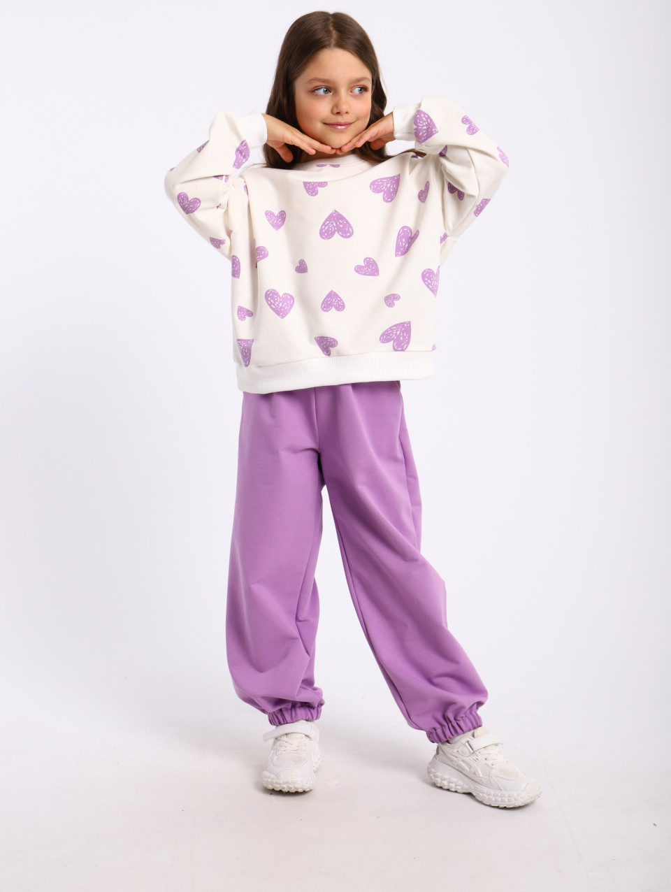 Костюм для девочки весенний, осенний трикотажный выполнен из ткани: футер 2-х нитка пенье. Прогулочный, комфортный и мягкий костюм. Базовый комплект для девочки - состоит из свитшота и брюк. Толстовка с эластичной круглой горловиной. Брюки с поясом на резинке, с манжетами, которые обеспечивают прилегание и не сковывают движений девочки. Все элементы костюма можно носить раздельно. Комплект двойки это отличное решение для прогулок. Детский костюм станет прекрасным подарком девочке, дочери, внучке, племяннице, на фотосессию.
