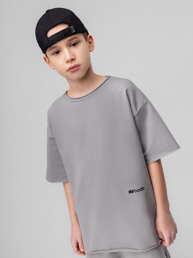 Артикул 11-665MU Состав 92% хлопок 8% лайкра Материал футер двухнитка Костюм: футболка и шорты. Свободная футболка с коротким рукавом. Горловина футболки округлой формы с необработанным краем. Низ изделия и низ рукава не обработаны. Шорты прямые, свободные на поясе с внутренней резинкой, с боковыми карманами. Шорты по низу изделия с необработанным краем.