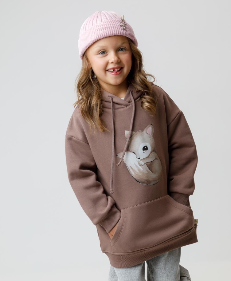 уди с капюшоном для девочки из мягкого футера трёхнитки с начёсом. Пояс и манжеты выполнены из мягкого эластичного трикотажа. Худи сохраняет форму и стойкий цвет после многочисленных стирок и идеально подходит на каждый день. Оригинальный принт выполнен из стойких текстильных гипоаллергенных красителей. Все трикотажные полотна производятся в соответствии с нормами швейцарского сертификата ЭкоТекс.