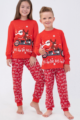 Детская пижама с брюками выполнена из натурального 100% хлопка. Свободный крой не сковывает движений и позволяет ребенку всегда оставаться активным, а яркий красный цвет и праздничный принт Мишка создают уютную атмосферу и поднимают настроение. Трикотажная пижамка для мальчикови девочек станет отличным подарком на Новый год и Рождество.
