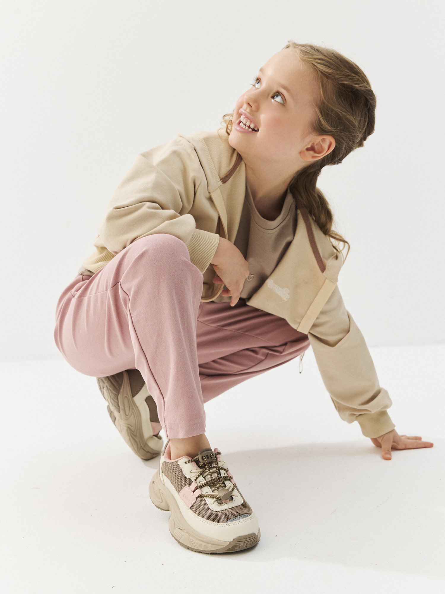 Кроссовки "Беж/Пудра" с двойной шнуровкой