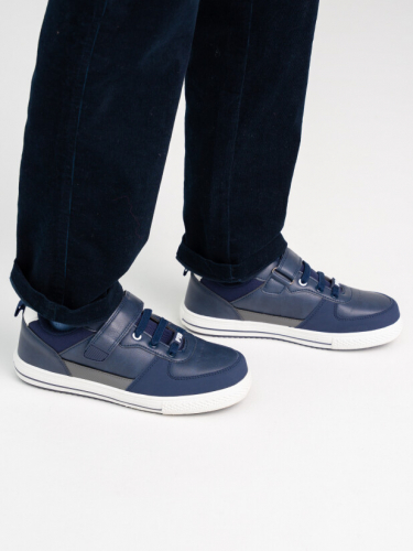Модные полуботинки для мальчика подростка. Верх обуви выполнен из комбинации искусственной кожи, обладающей высокими эксплуатационными свойствами, и дышащего текстиля. В носочной части обуви стоит текстильная подкладка c высоким содержанием хлопка 80%, которая обладает высокой гигроскопичностью. В пяточной части обуви текстильная подкладка обладает хорошей износостойкостью. Кожаная профилированная стелька с анатомической формой подсводника обеспечивает правильную нагрузку на стопу. Формоустойчивый задник поддерживает стопу в правильном положении. Две удобные застежки-липучки дают возможность регулировать обувь на любой подъем. Подошва не скользит и устойчива к истиранию. Кроссовки спортивные для мальчика школьника отлично подойдут как сменка в школу, на физкультуру, спортивную секцию и для прогулок: весна, лето, осень.