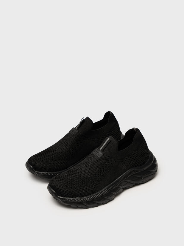 Эти стильные черные подростковые слипоны для школы разработаны для комфорта и свободы движений. Верх из эластичного трикотажа хорошо тянется и повторяет форму стопы — такая универсальная детская обувь легко надевается и снимается без усилий. Такая конструкция особенно удобна для активных детей и подростков.
