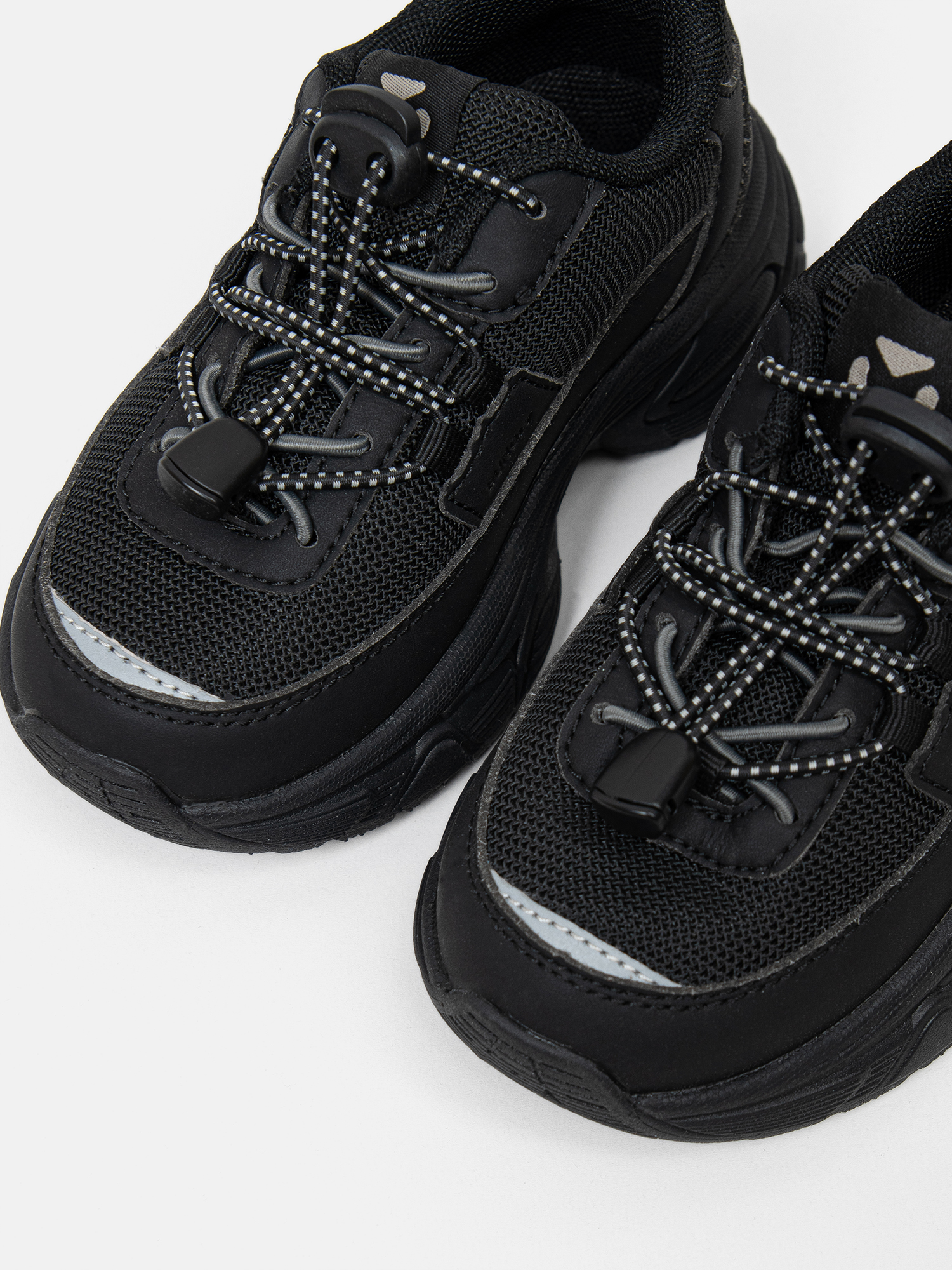 Двойная шнуровка на эластичные шнурки. Верхний шнур с фиксатором для дополнительной регулировки по ноге.